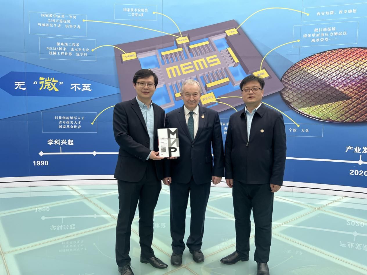 访问期间,奇日科院士在新葡萄8883官网AMG官网副院长汪焰恩教授,院长助理赵海涛教授的陪同下,参观了学院空天微纳系统教育部重点实验室、学研一体化教学示范中心,详细了解了学院在智能制造、MEMS芯片设计与制造技术,航空航天特种MEMS等领域的突破性成果。推进会上,奇日科院士赠予新葡萄8883官网AMG官网其2024年出版的MEMS领域的专著,他表示希望中白双方未来能够在结构、技术及应用领域深入开展国际科技合作。