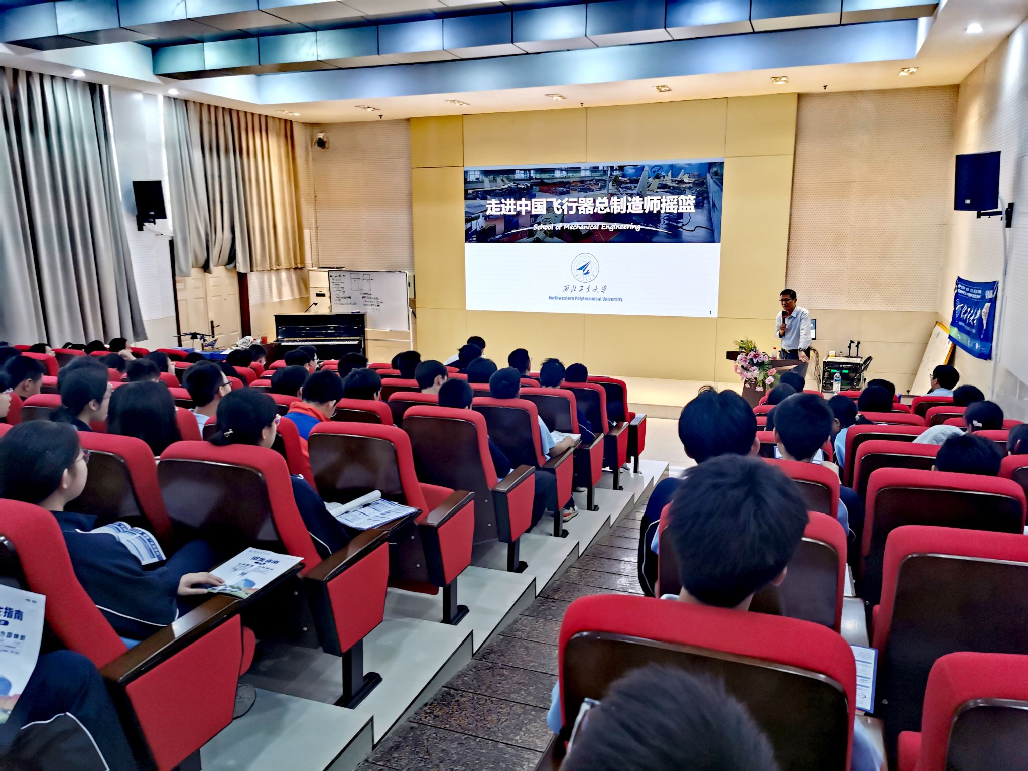 常洪龙院长主讲的《走进中国飞行器总制造师摇篮》专题科普讲座将活动推向高潮。结合飞机制造、航空发动机制造、芯片制造等重大工程案例,常洪龙院长以“总师视角”诠释了西工大人“顶天立地”的科研品格,让学子们关注到了科技发展的前沿,感受到了现代科技的魅力,激发了少年们科技报国的信念。这场融贯大国重器与青春梦想的思政金课,在经久不息的掌声中为赣鄱学子播下“总师梦”的种子。