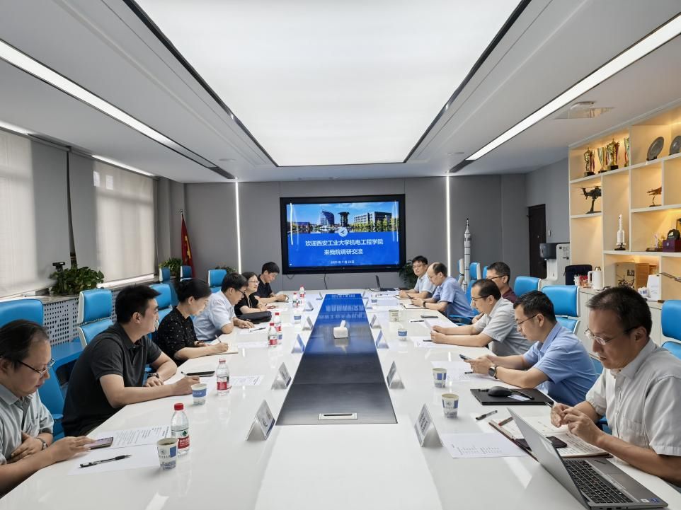 7月23日下午,西安工业大学机电工程学院院长王洪喜一行来新葡萄官网调研交流,新葡萄官网党委书记张映锋、院长常洪龙及全体领导班子成员出席了此次交流会。会议由张映锋主持。
