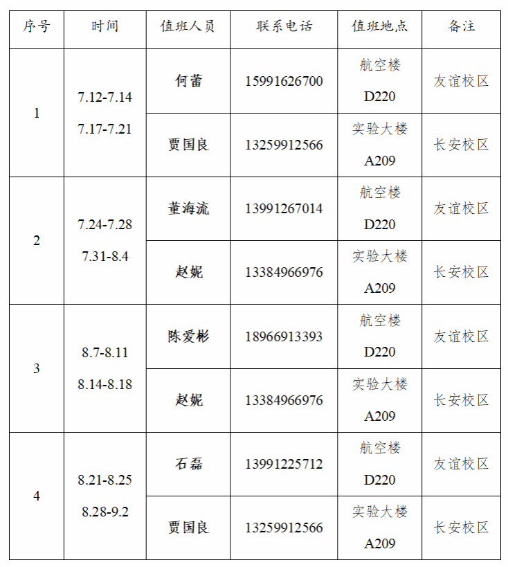 根据学校、学院暑期相关工作的通知,学研一体化实验教学中心于7月12日进行暑期值班,现就教学中心暑期值班安排如下: