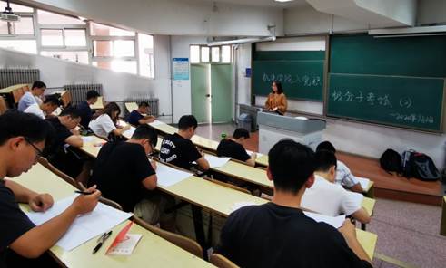 考试过程中,同学们严格遵守考场纪律、认真答题,努力回忆平时党课培训以及党章党规相关内容,有条不紊地作答,现场气氛紧张而严肃。