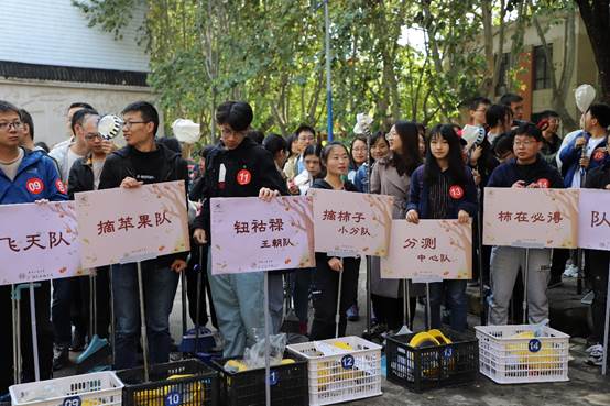 16日中午12点,由校党委宣传部及共青团新葡萄8883官网AMG官网委员会主办、新葡萄8883官网AMG官网承办的柿子创意采摘大赛在温暖的秋日阳光中开始。此次活动全校各个学院都派出了代表队参加,恰逢校友周,来自全国各地的校友也加入到了此次摘柿子的比赛中,总计20个队伍、近100名师生参赛。