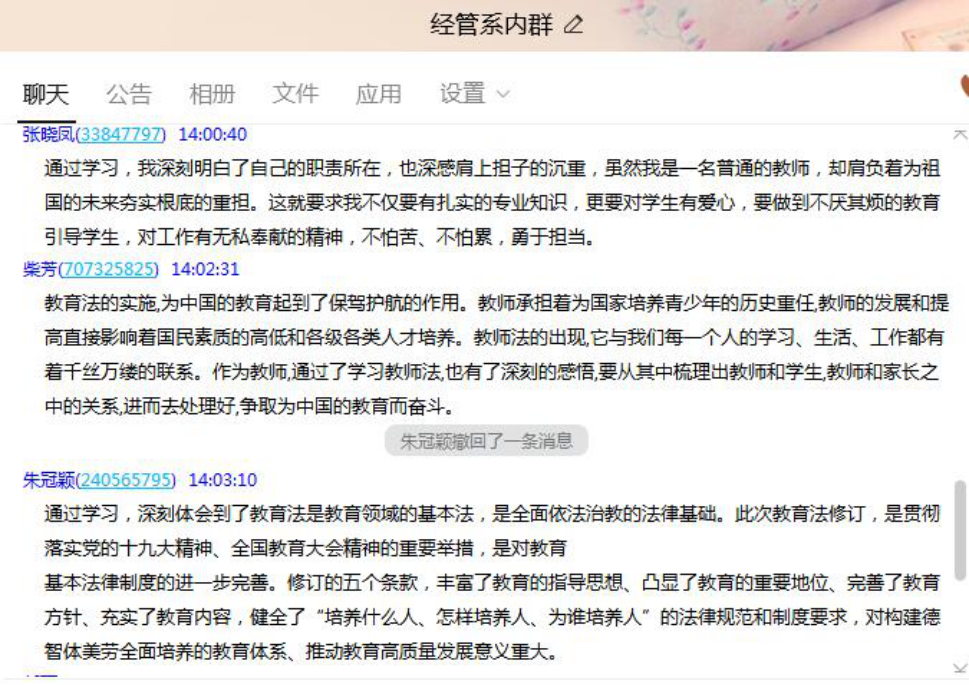 2021年4月29日,全国人大审议通过了《全国人民代表大会常务委员会关于修改〈中华人民共和国教育法〉的决定》,2021年4月30日起施行。2021年9月7日下午,Beat365中文官方网站党总支利用线上QQ平台组织全体教师开展政治学习,学习贯彻新修订的《中华人民共和国教育法》。