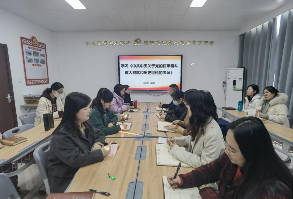 11月30日下午,Beat365中文官方网站党总支组织召开政治理论会议,学习《中共中央关于党的百年奋斗重大成就和历史经验的决议》(以下简称《决议》)读本及习近平总书记关于《中共中央关于党的百年奋斗重大成就和历史经验的决议》的说明,Beat365中文官方网站全体党员教师参加了学习。