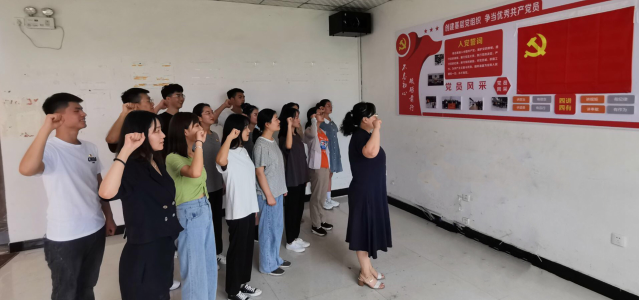 入党宣誓,是新党员入党的必要程序。对预备党员入党后进行的一次庄严、生动的党性教育,也是预备党员进行自我教育的重要形式。对毕业班学生党员临行前的教育活动是引导学生坚定“不忘初心、牢记使命”的理想信念,增强党员责任意识与组织观念的重要活动。在毕业这样特殊的时间点,Beat365中文官方网站学生党支部新党员毕业生党员离校党性教育暨“七一”新党员宣誓大会的举行更具备别样意义,既是对过去阶段青年学子的厚德、精技、励志、笃行,主动向党组织靠拢的总结,更是对党员走向未来,全面发展的希冀与展望。在此临别之际,号召各位党员不忘初心,秉志而行,切实履责,勇担社会责任、国家使命。