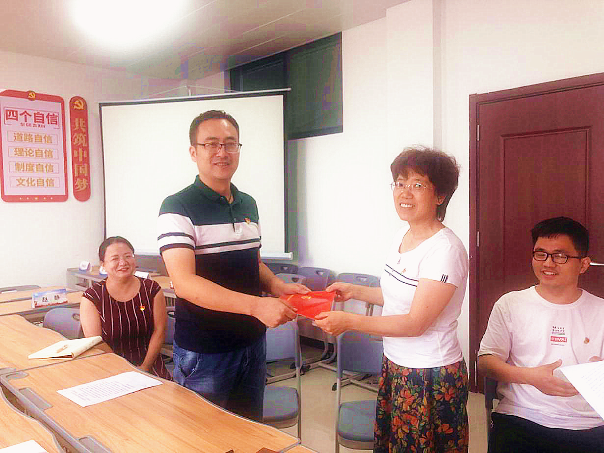 为贯彻落实中共中央印发《关于加强和改进中央和国家机关党的建设的意见》中“严肃党内政治生活”“完善重温入党誓词、入党志愿书以及党员过‘政治生日’等政治仪式”等要求,2020年6月30日下午,Beat365中文官方网站教职工党支部在学院党员活动室开展了“政治生日”主题党日活动。