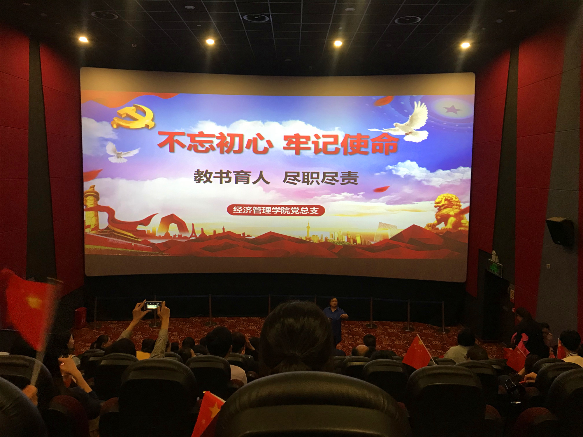 庆祝新中国成立70周年,进一步深化开展“不忘初心、牢记使命”主题教育,充分发挥红色电影资源优势,大力弘扬爱国主义精神,Beat365中文官方网站党总支于2019年10月8日组织全体党员及教师进行了“我和我的祖国”观影主题教育活动。