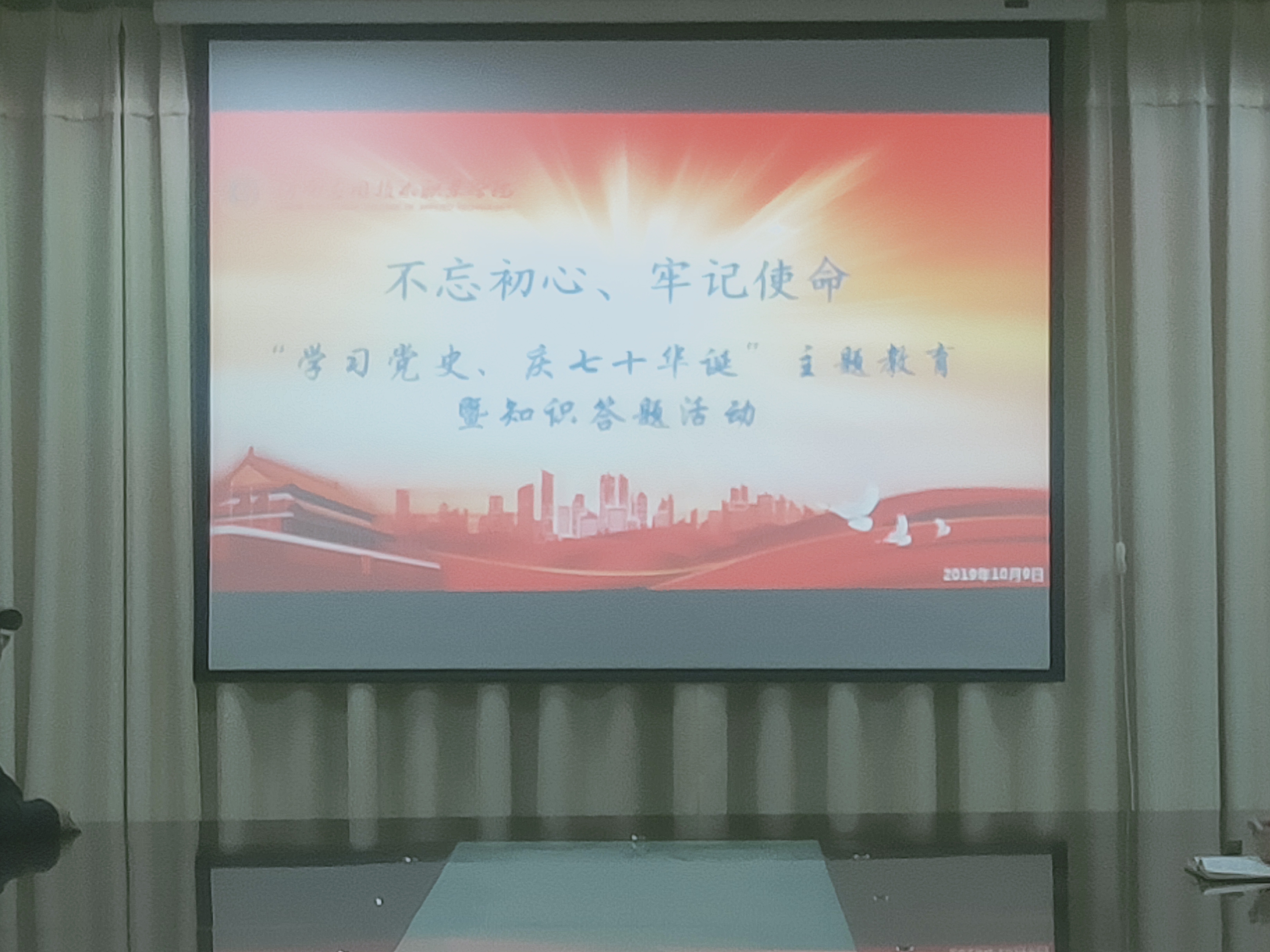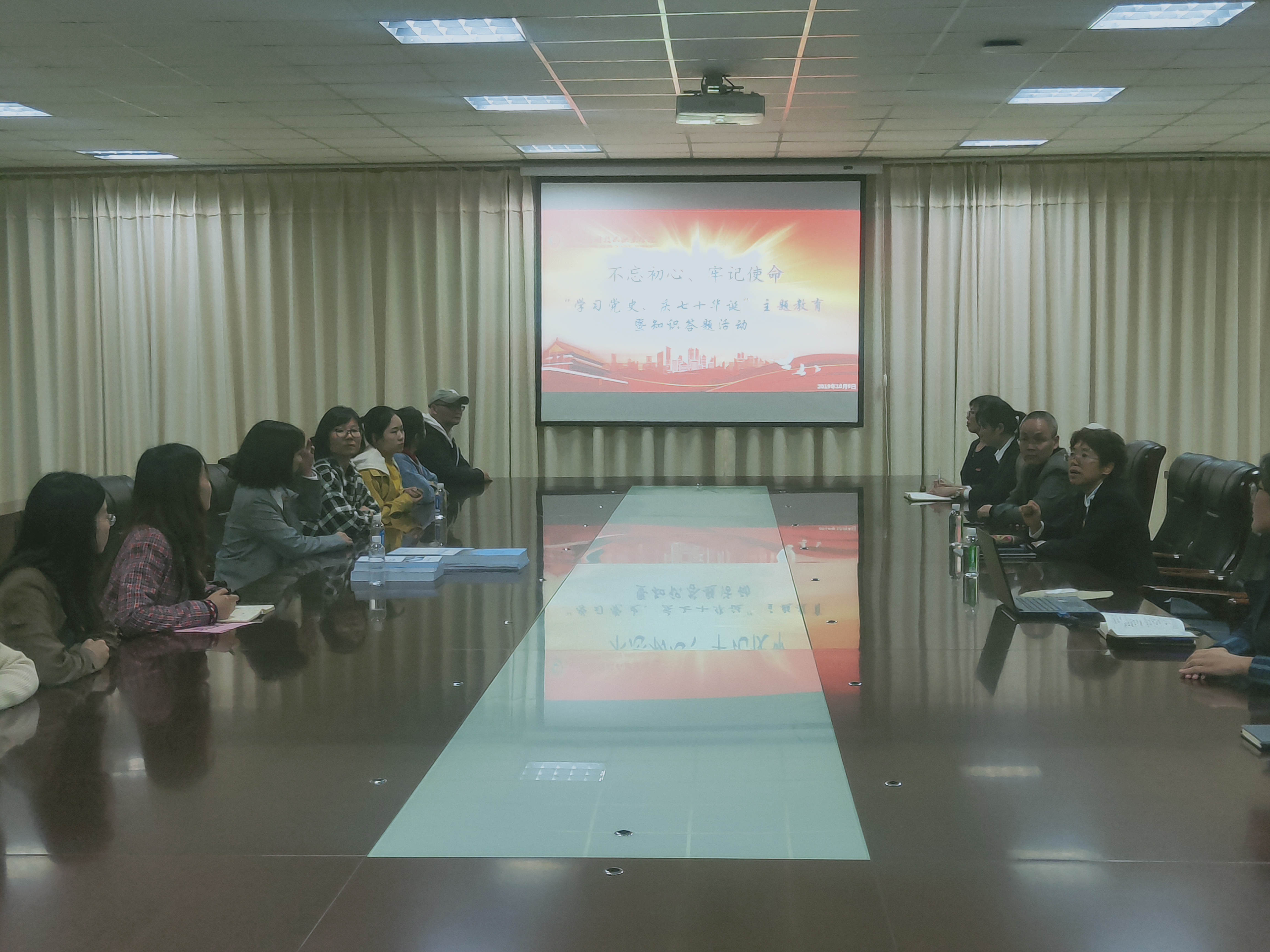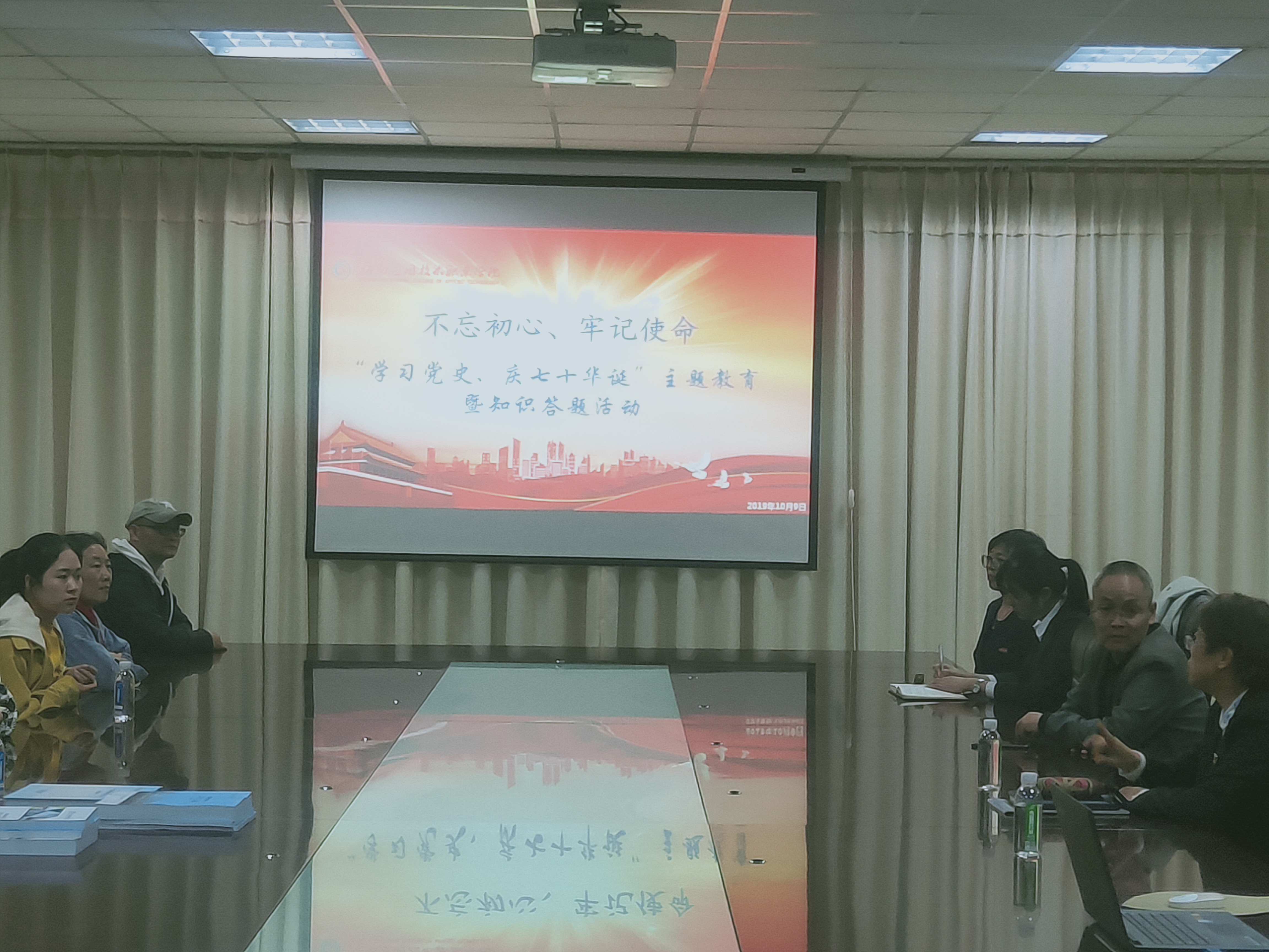 2019年10月9日,Beat365中文官方网站党总支召开“不忘初心、牢记使命 学习党史 庆七十年华诞”主题教育暨知识答题活动动员会。此次会议由学院党总支书记袁清香同志主持。