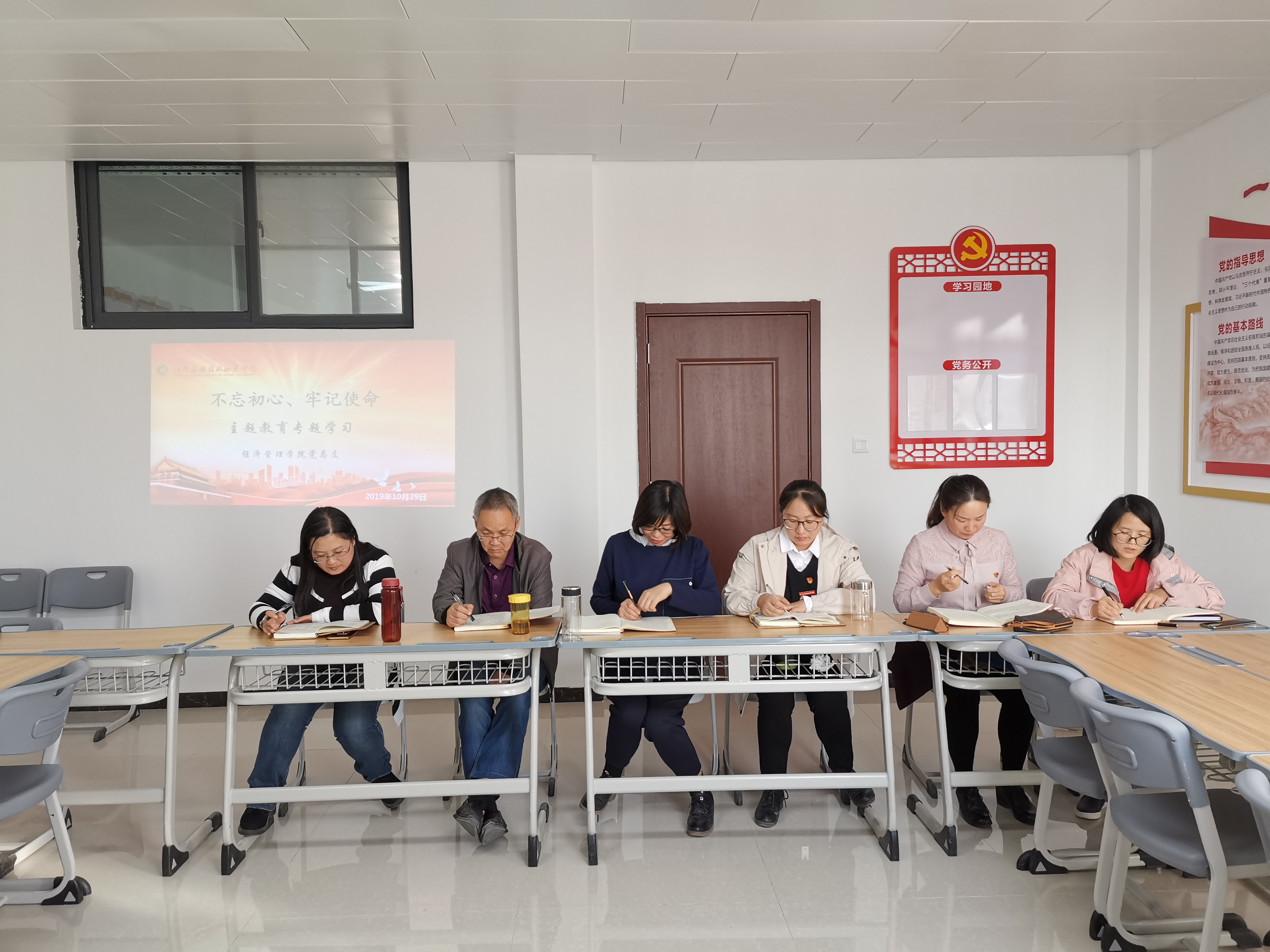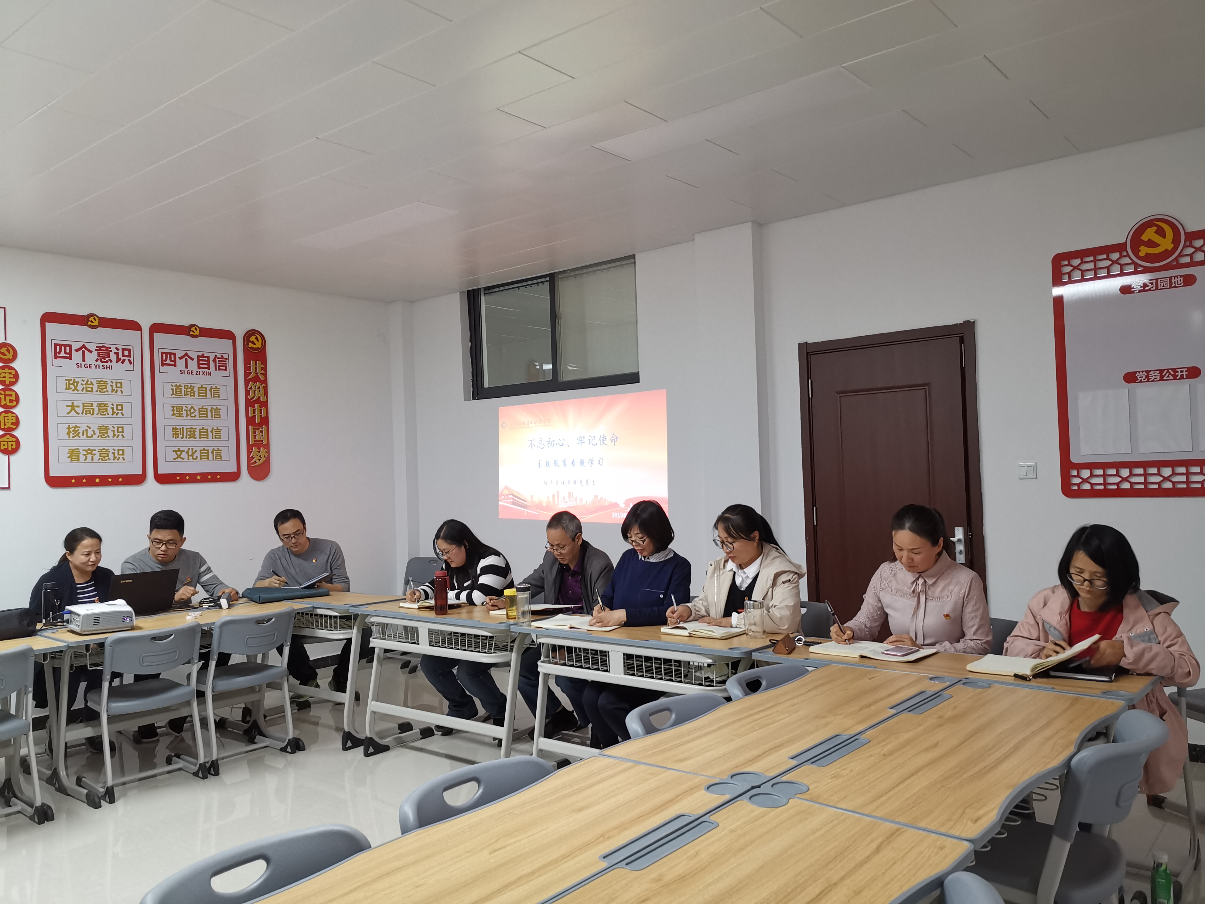 2019年10月29日下午,Beat365中文官方网站党总支在办公楼505进行“不忘初心、牢记使命”主题教育第六专题“强化党的政治纪律和政治规矩”和第七专题“加强党性修养”的集中学习研讨,学习由教工支部书记张召哲老师主持,全体党员教师参与本次学习研讨。
