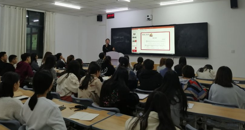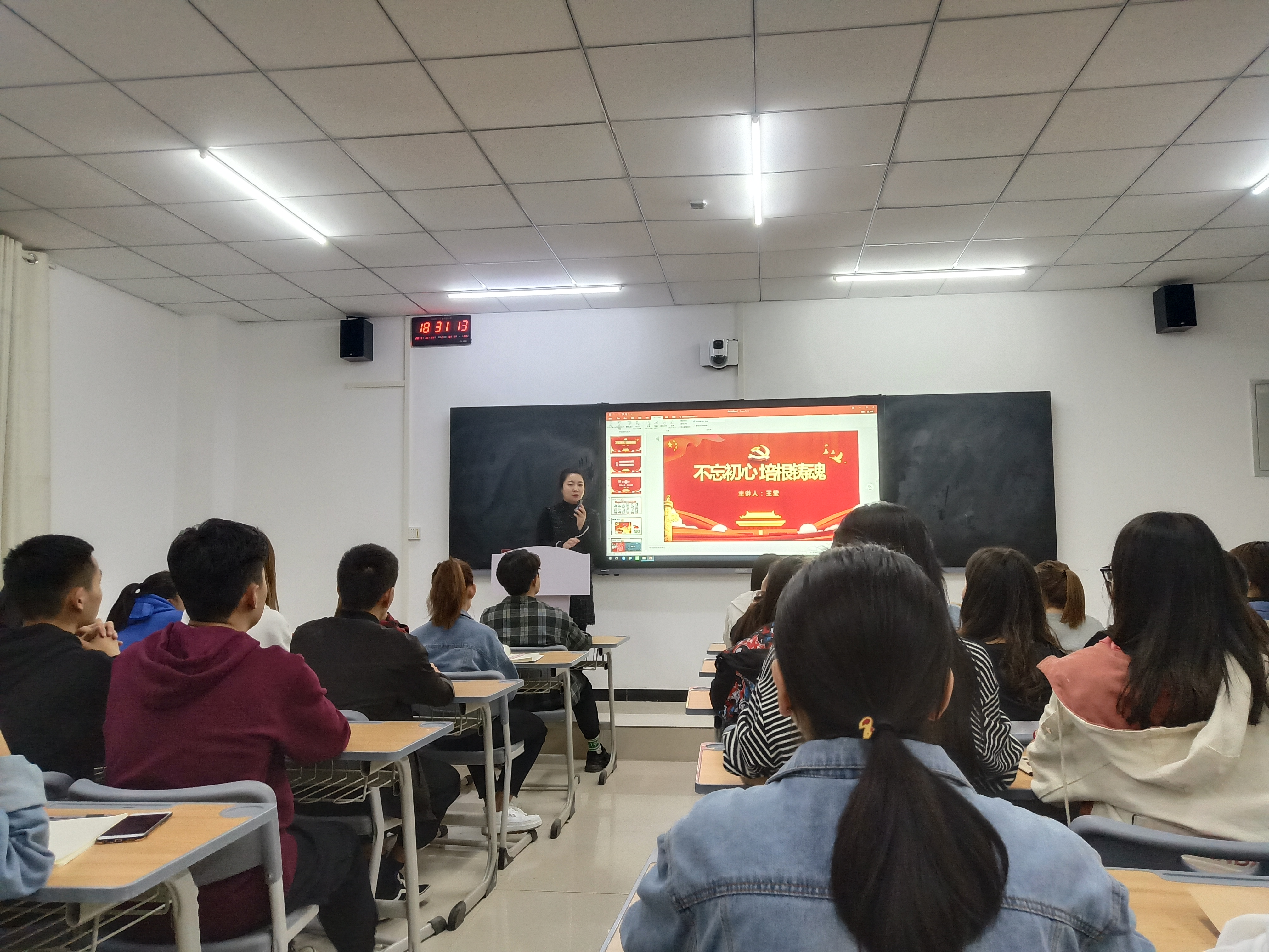 2019年10月29日晚,Beat365中文官方网站党总支学生党支部组织全体入党积极分子开展“不忘初心 培根铸魂”主题教育党课。此次党课由团委王莹老师主讲,组织委员聂蕴老师主持。