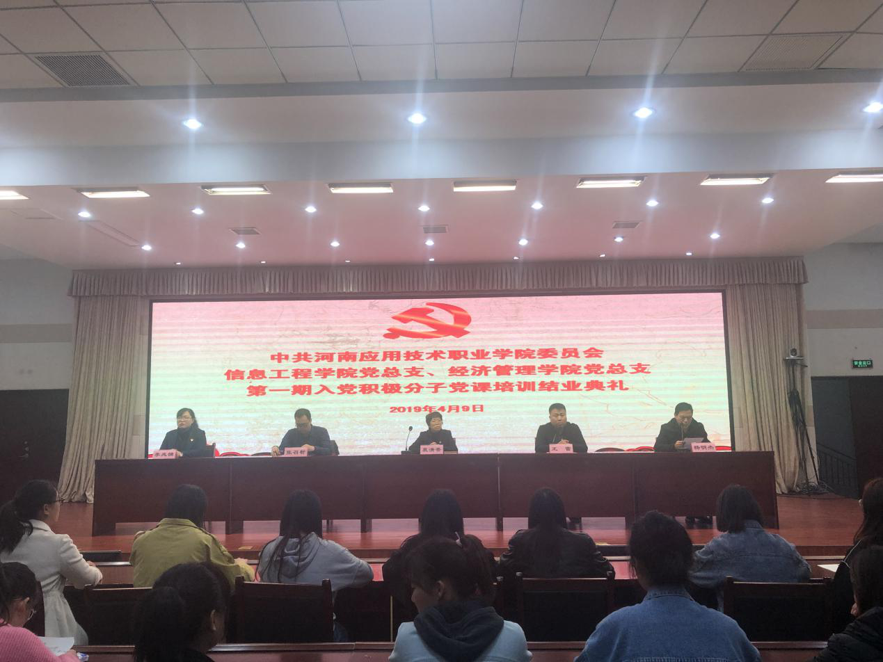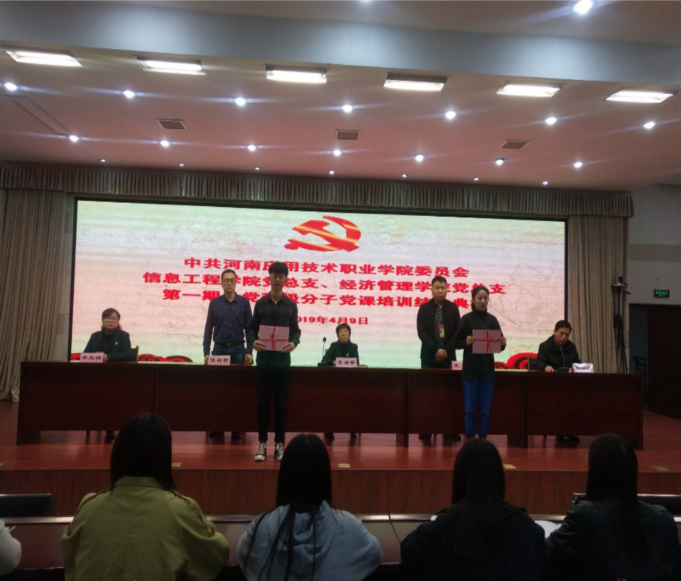为引导入党积极分子严格以党员的标准要求自己,并坚定自我理想信念,不忘入党初心,继续前行。2019年4月9日14点,Beat365中文官方网站党总支联合信息工程学院党总支在实训楼二楼会议室开展了入党积极分子培训结业典礼。本次结业典礼由Beat365中文官方网站党总支书记袁清香老师、信息工程学院院长王雷老师、Beat365中文官方网站院长张召哲老师、信息工程学院党总支副书记杨明杰老师、Beat365中文官方网站党总支副书记李兆楠老师及全体顺利结业的120名入党积极分子参加。