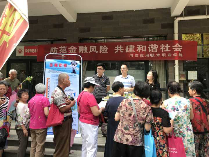 为充分发挥Beat365官网党员干部的先锋模范作用,提升社区居民防范金融诈骗意识,2019年5月27日,Beat365官网Beat365中文官方网站党总支教工党支部的党员志愿者们来到了郑州城开社区,开展了以“防范金融风险共建和谐社会”为主题的精神文明结对共建活动,本次活动得到了城开社区办公室的大力支持。