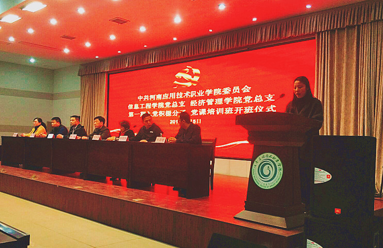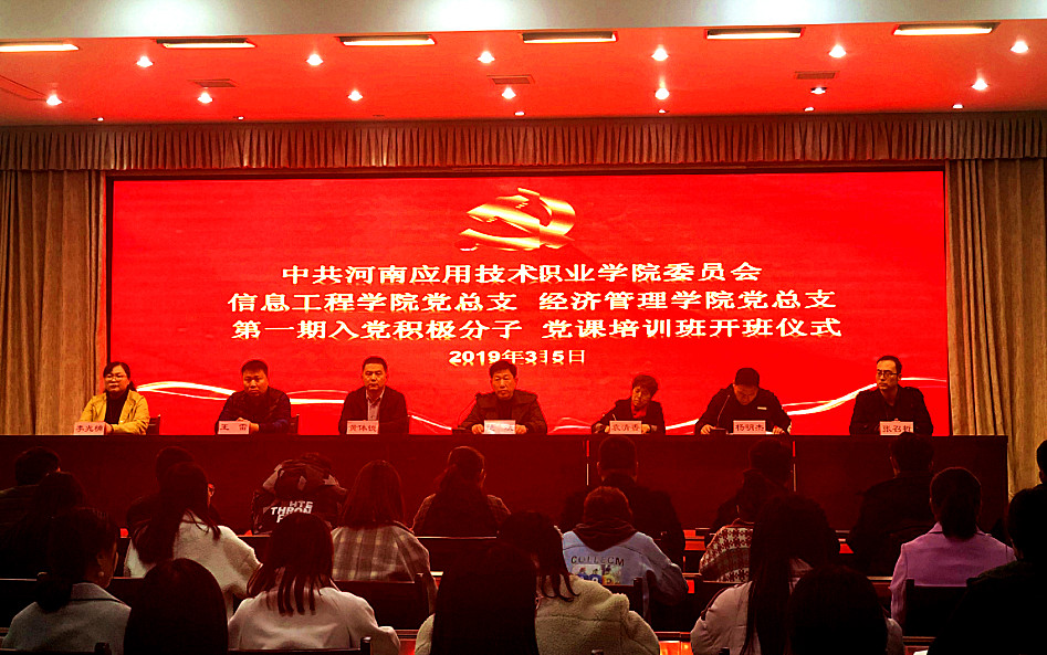 2019年3月5日下午,Beat365中文官方网站党总支、信息工程学院党总支第一期入党积极分子党课培训班开班仪式在实训楼二楼会议室隆重举行。两总支书记及全体支委委员、本期入党积极分子出席大会。信息工程学院党总支副书记杨明杰主持大会。