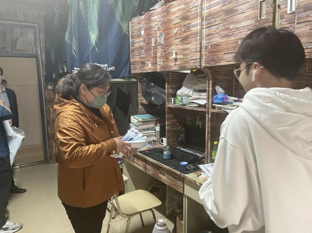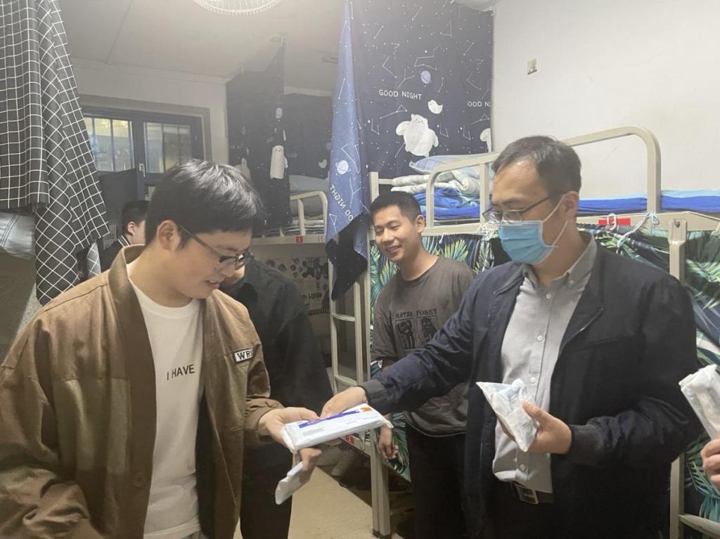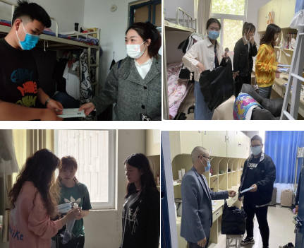 “疫情无情,师生有爱!”在国内疫情散发阶段,通过进宿舍、发口罩、面对面、谈谈心,不仅拉近了师生心理距离,也让顺畅沟通变为可能。教职工亲手将防疫“暖心包”送到学生手中,强调“疫情不放松,口罩不能停”,要增强卫生保健意识,养成佩戴口罩好习惯。同时,以最近“隐瞒行程、翻墙进校,一大学生被立案侦查!”为案例,提醒学生要自觉遵守疫情防控校规校纪,不逾矩、不越轨,为自己负责,为家庭负责,为学校及社会负责。同学们表示,能够明白老师良苦用心,也愿意自觉遵守校规校纪,做好自身防护,与学校一起携手并进,共克时艰,坚决打赢疫情防控攻坚战。