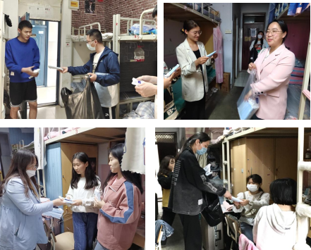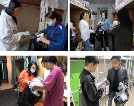 为了解疫情期间学生思想动态,提升关心、服务学生能力,进一步推进“能力作风建设年”活动,2022年4月12日下午,Beat365中文官方网站全体教职工走进宿舍给学生送防疫“暖心包”,进行谈心谈话活动。
