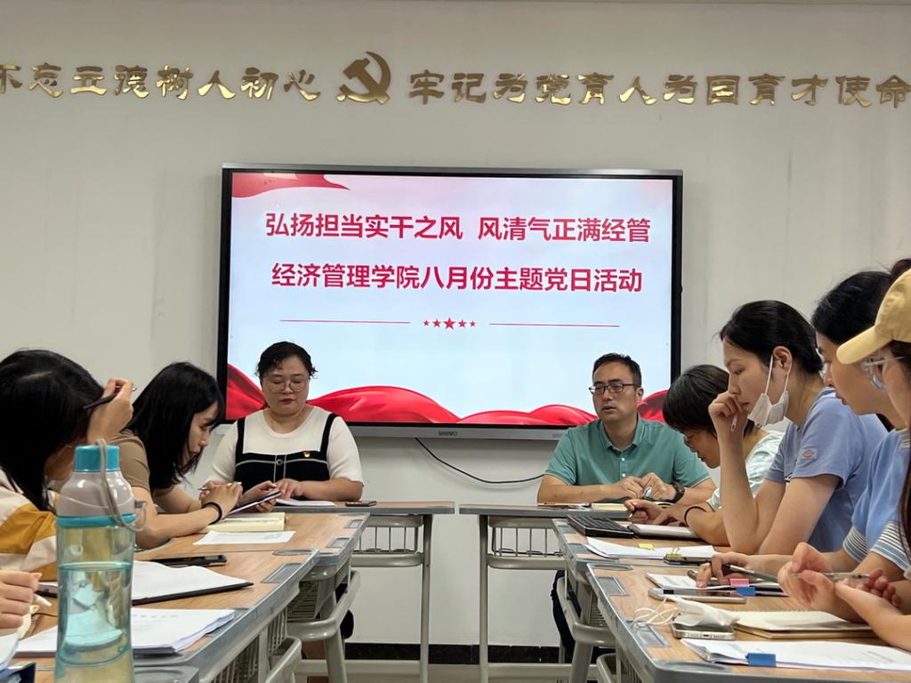 为以更加饱满精神状态投入新学期工作,2022年8月30日上午,Beat365中文官方网站党总支在A505召开“弘扬担当实干之风 风清气正满经管”主题党日活动,全体党员参与活动。
