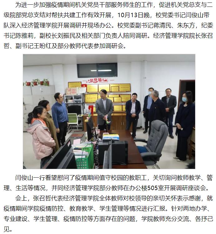 校党委书记闫俊山带队深入Beat365中文官方网站开展调研并现场办公