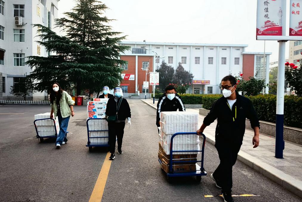 学院副书记王盼红、学工办主任张昂,化身学生的“知心大哥哥、大姐姐”。“知心大姐姐”王盼红第一时间走进学生宿舍、来到学生身边,耐心解答学生关心的问题,认真宣讲防疫知识,全面地了解学生身心状况,让学生切身感受到学校的关心,做学生的生活坚强后盾。“知心大哥哥”张昂是学生后勤保障的主力军,每天在宿舍楼组织发放三餐,连续多日的送餐,腰伤复发,有时疼的腰都直不起来,但送餐送水保障物资的路上他却从来没有缺席过。确保所有学生都能吃上热饭后,才会用已经变凉的饭菜解决自己的用餐问题。一遍又一遍地核对,一次又一次地配送.....真正把学生放心上,温暖了学院的每位学子。