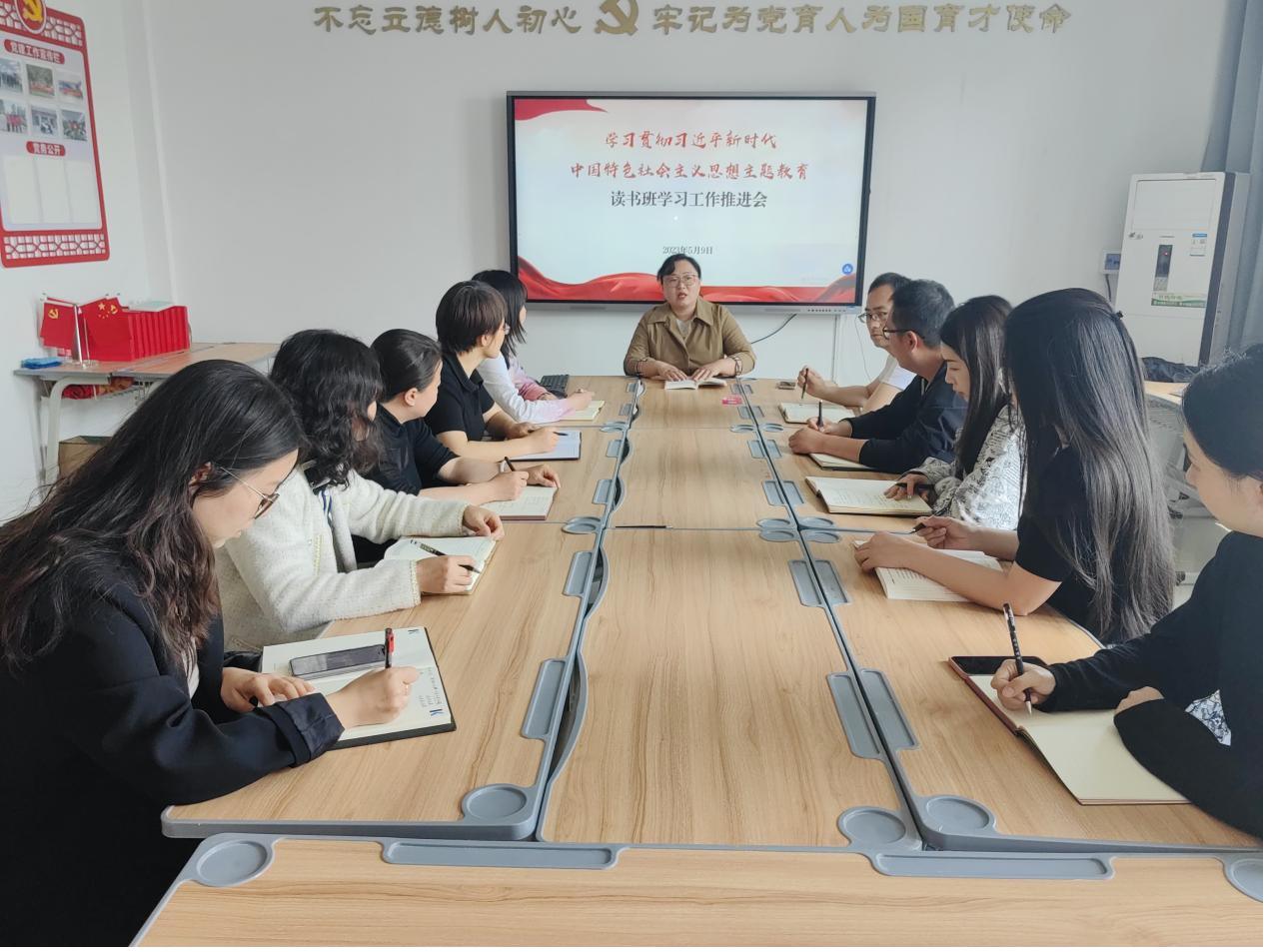 为进一步推动主题教育走深走实,5月9日,Beat365中文官方网站在A505召开学习贯彻习近平新时代中国特色社会主义思想主题教育读书班学习工作推进会。全体党员教师参加会议。书记李兆楠主持会议并做动员讲话。