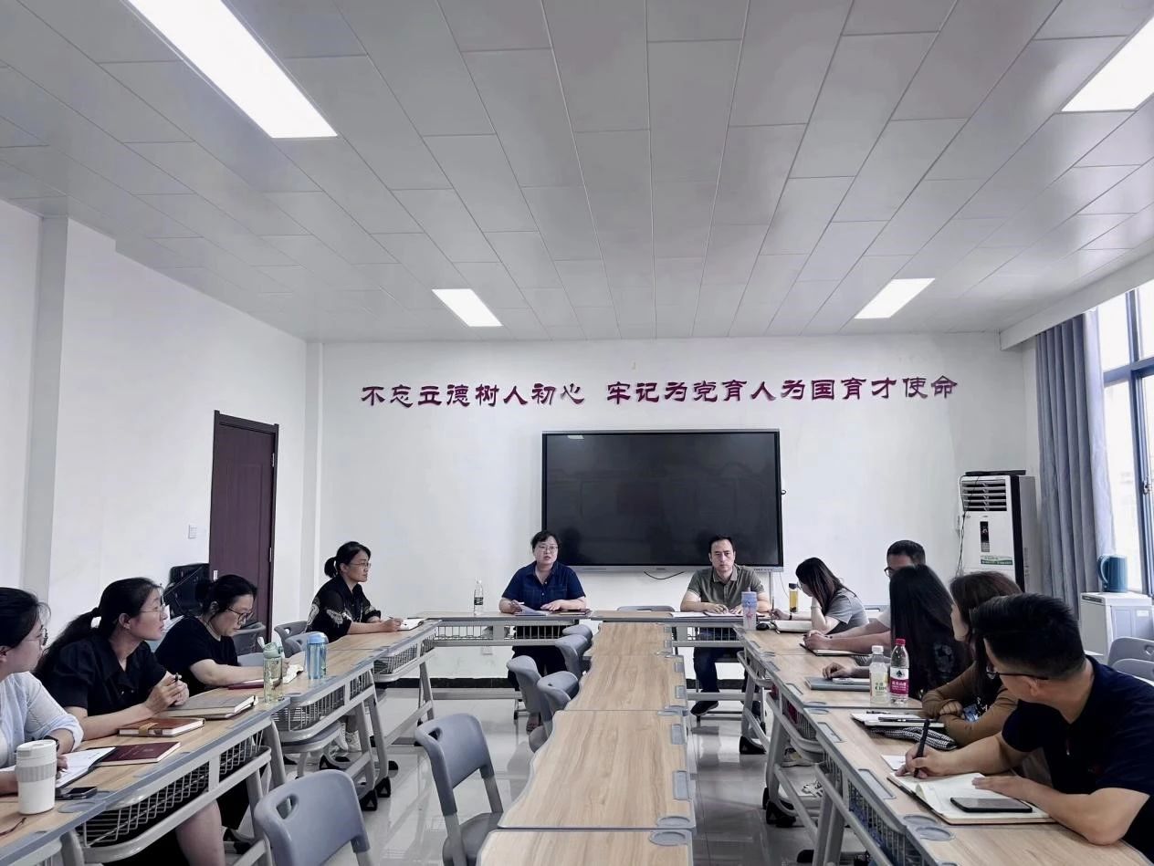 2024年6月4日下午,Beat365中文官方网站党总支在郑州校区A505、开封校区B306同时召开2024年春季学期第六次政治理论学习会,书记李兆楠主持会议,东西校区全体党员教师会议。