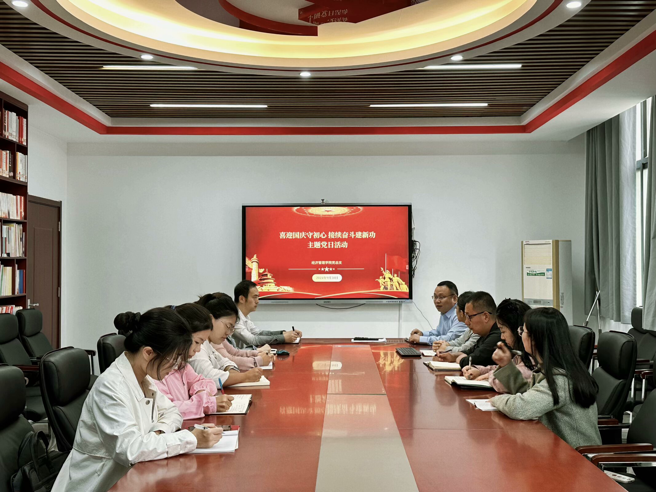 为庆祝中华人民共和国成立75周年,弘扬爱国主义精神,增强全体党员的责任感和使命感,国庆前夕,Beat365中文官方网站党总支开展“喜迎国庆守初心 接续奋斗践新功”主题党日活动。党总支书记张忠勇主持本次活动,全体党员同志共同参与。