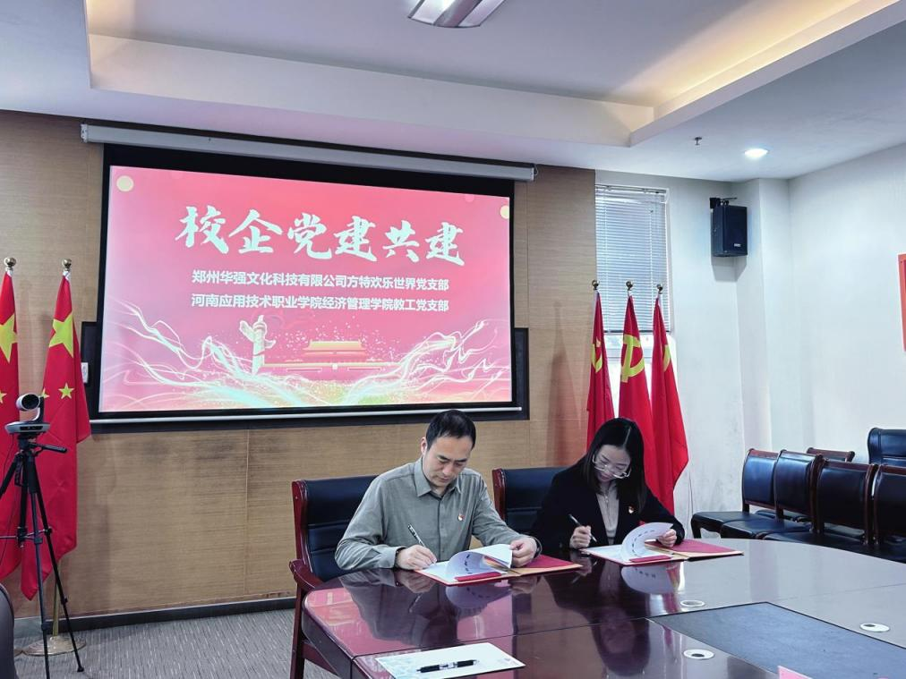 在全体参会人员见证下,Beat365中文官方网站教工党支部书记张召哲与郑州华强方特人资总监姚真真,共同签署党建共建协议,明确共建目标、内容及实施步骤。双方均强调,新时代加强校企党建合作极具战略意义,既能提升党组织建设水平,又能转化党建优势,为培育高素质技术技能人才、服务地方经济发展添砖加瓦。