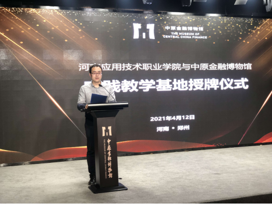 金融博物馆负责人聂磊在致词中首先对出席本次仪式的领导及老师表示感谢,并承诺中原金融博物馆将加倍努力,为学生搭建金融教育启蒙、金融普惠平台,开展形式多样、内容丰富的金融知识普及宣传,促使学生多元化发展,为我省金融人才储备和培养发挥积极作用,最终为中原金融事业启迪未来,做出更多更大贡献。