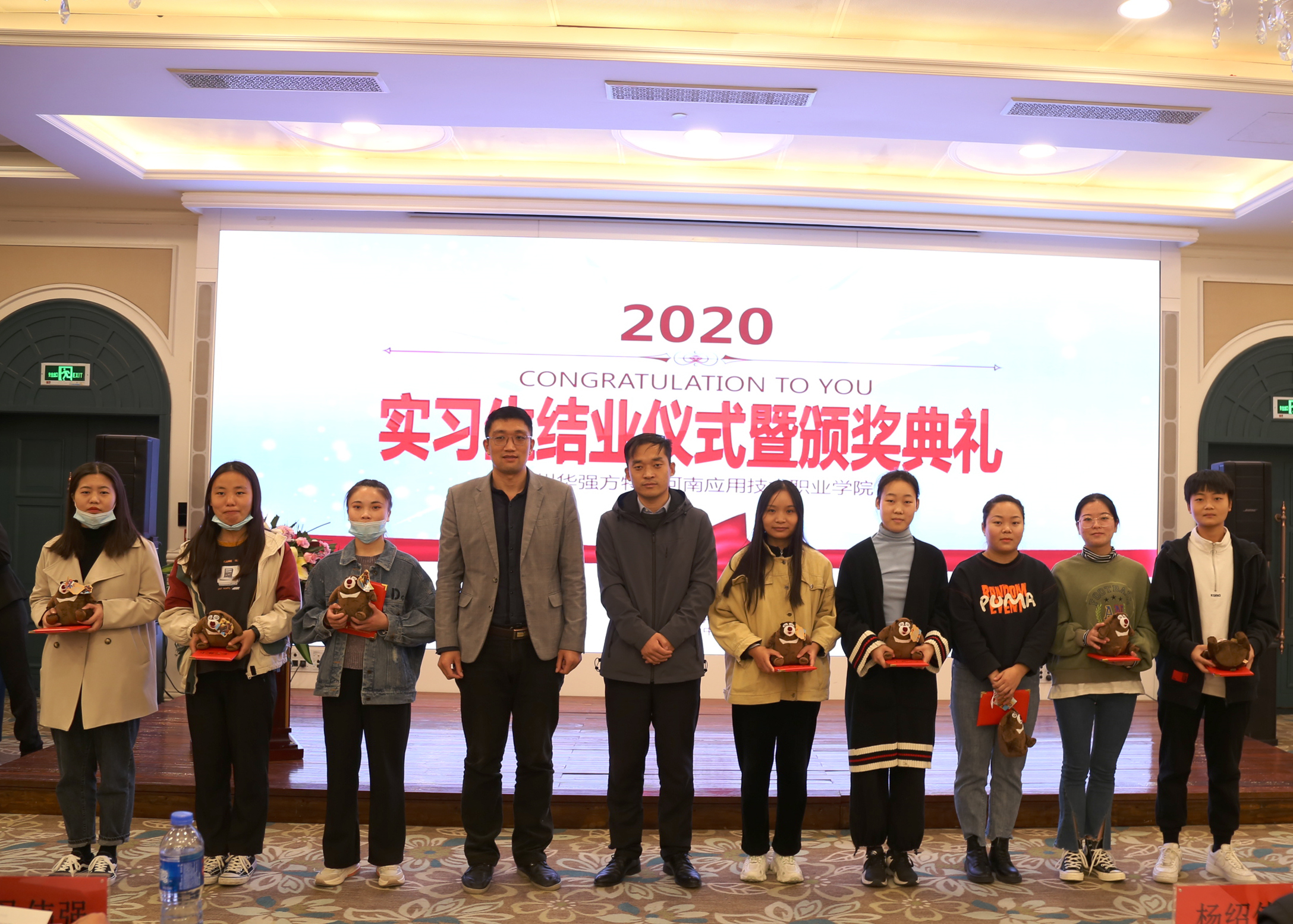 随后,学院和企业对实习过程中表现突出的同学们进行了表彰。优秀学生代表学生进行发言,表示通过实习让他们掌握了更加丰富饱满灵活多样的实践技能,自身素质得到了很大提高;优秀的企业文化、员工的敬业精神、公司领导对于实习生无微不至的关怀给他们留下了深刻的印象。更是感谢学校的教育培养、提供了很好的平台,会在今后的学习生活工作中继续发扬应院精神,为校增光。会议结束后,大家合影留念。