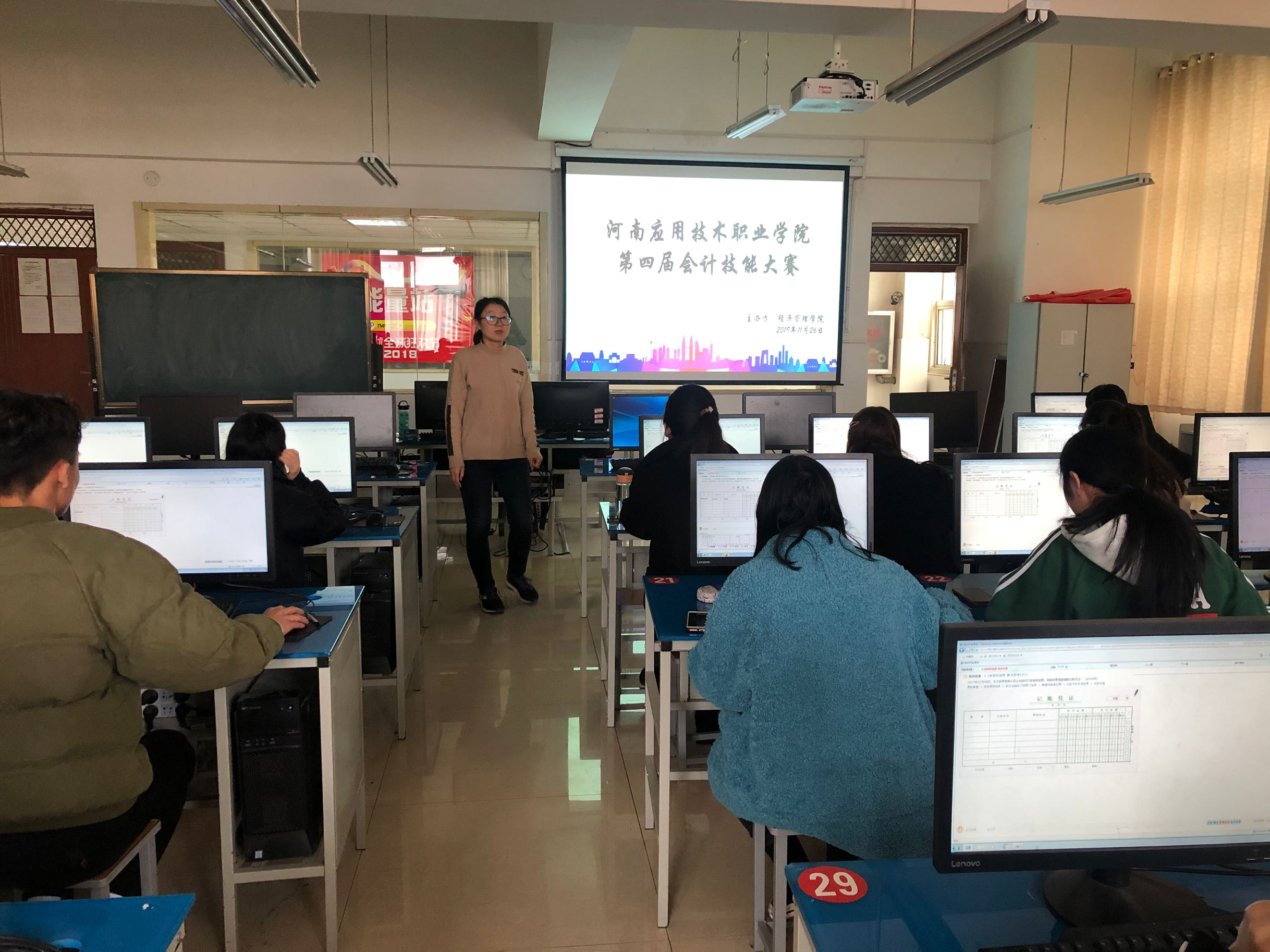 2019年11月26日下午,由Beat365中文官方网站主办Beat365中文官方网站承办的第四届“会计技能大赛”圆满落幕。本次大赛在学校大力支持和Beat365中文官方网站张召哲院长的指导下,由张梨花、张晓凤两位老师指导,在会计实训室E601如期举行。本次技能竞赛既是对学生会计知识和技能的考验,也是对会计专业教学成果的检验,旨在通过院内比赛,为今后参加校外技能大赛总结经验,达到“以赛促学、以赛促训、以赛促赛”的目的,以期更好地推进专业建设、提升课程教学效果。