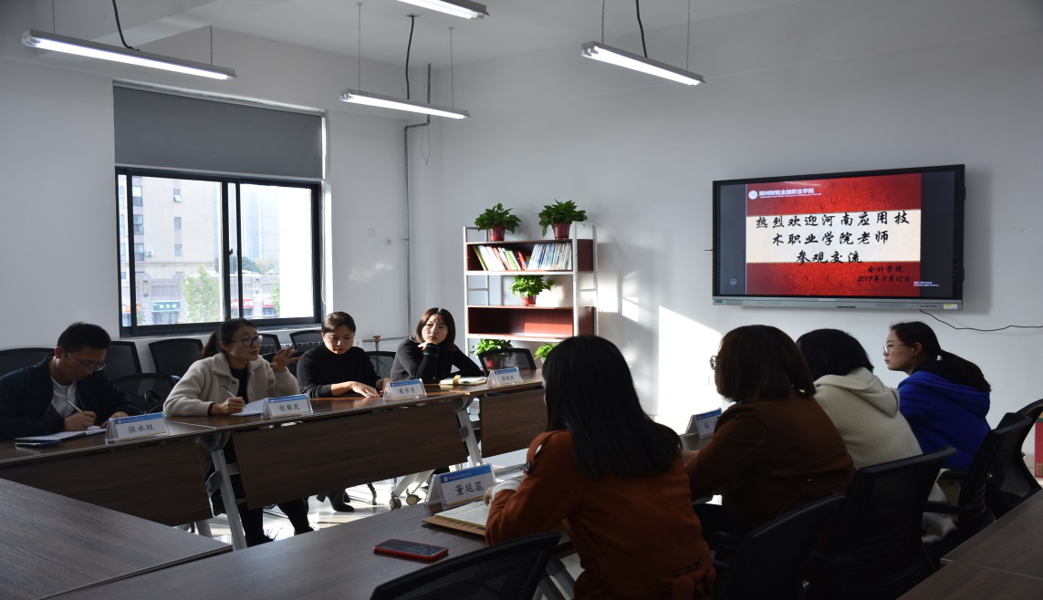 为了加强Beat365官网会计技能竞赛团队建设,提升Beat365官网在河南省职业院校会计技能竞赛中的水平,本着学习先进、问道取经的原则,2019年11月12日下午,Beat365官网Beat365中文官方网站会计教研室主任张梨花率领教师柴芳芳、张晓凤、张永旺前往郑州财税金融职业学院就“如何有效提高会计技能竞赛水平”进行调研学习,该学院会计技能赛项连续多年荣获河南省一等奖,竞技水平成绩优异、学生综合素质较高。