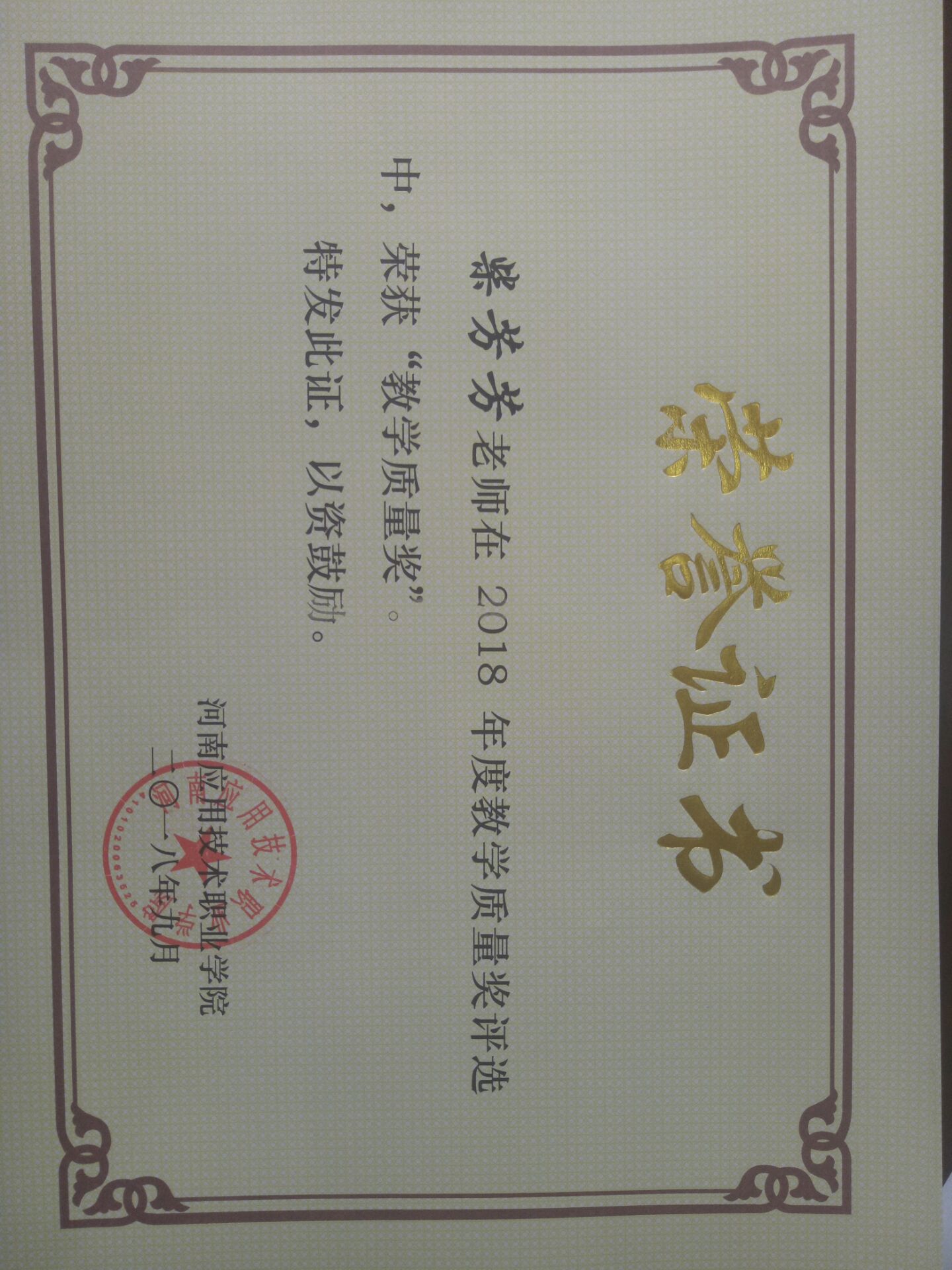 柴老师一直在教学一线工作,积累了较为丰富的教学经验,形成了自己的教学特色,在教学过程中一直得到学生的欢迎和同行的肯定。
