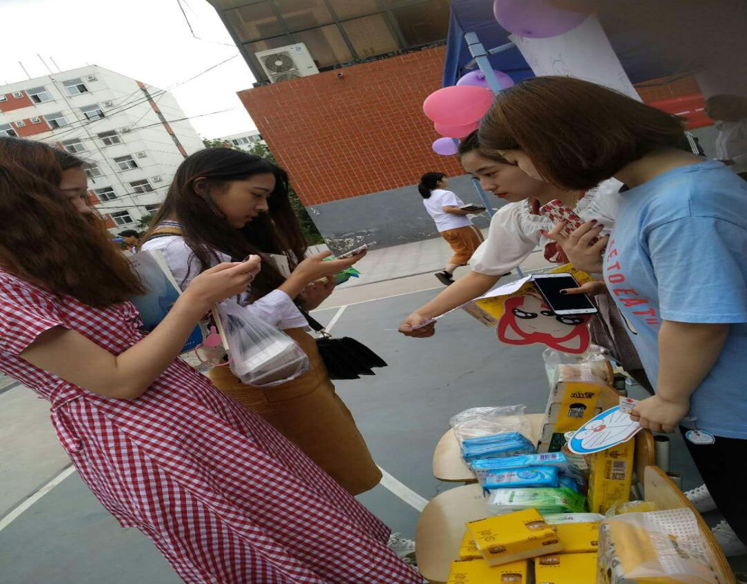 本次营销实战是基于2016级会计专业《市场营销学》课程实训周举办的,由任课教师李小闯老师提前一个月给学生传达实训任务,要求学生结合课程所学营销策划知识,选取营销商品,通过线上线下相结合,提前做市场调研和广告宣传。经过一个月的紧张备战,在实训周的前三天学生在室内进行营销策划方案的撰写和实训材料的准备,周四进行室外实战营销。