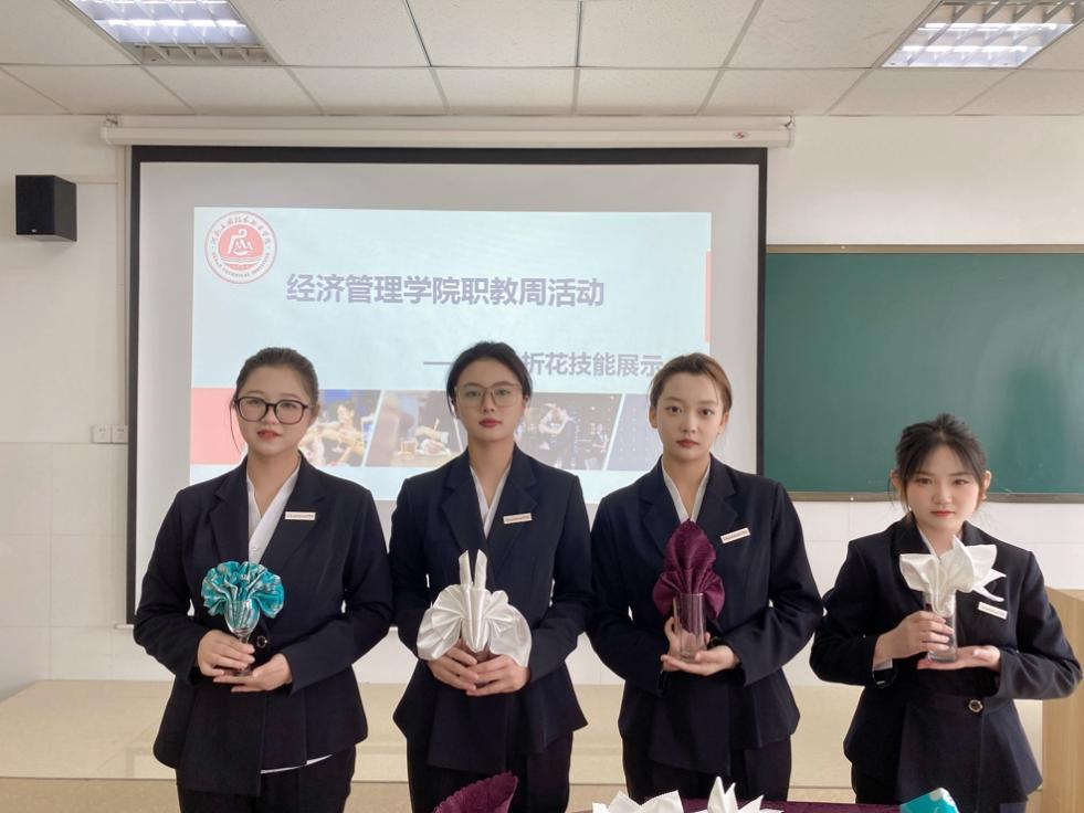 Beat365中文官方网站职教活动周之餐巾折花技能展示于2022年5月11日举行,餐巾花造型美观、生动形象,选手们动作娴熟、妙手生花,展示了扎实的基本功。大赛充分展示了经管学子扎实的专业知识、熟练的操作技能和精益求精的专业精神。