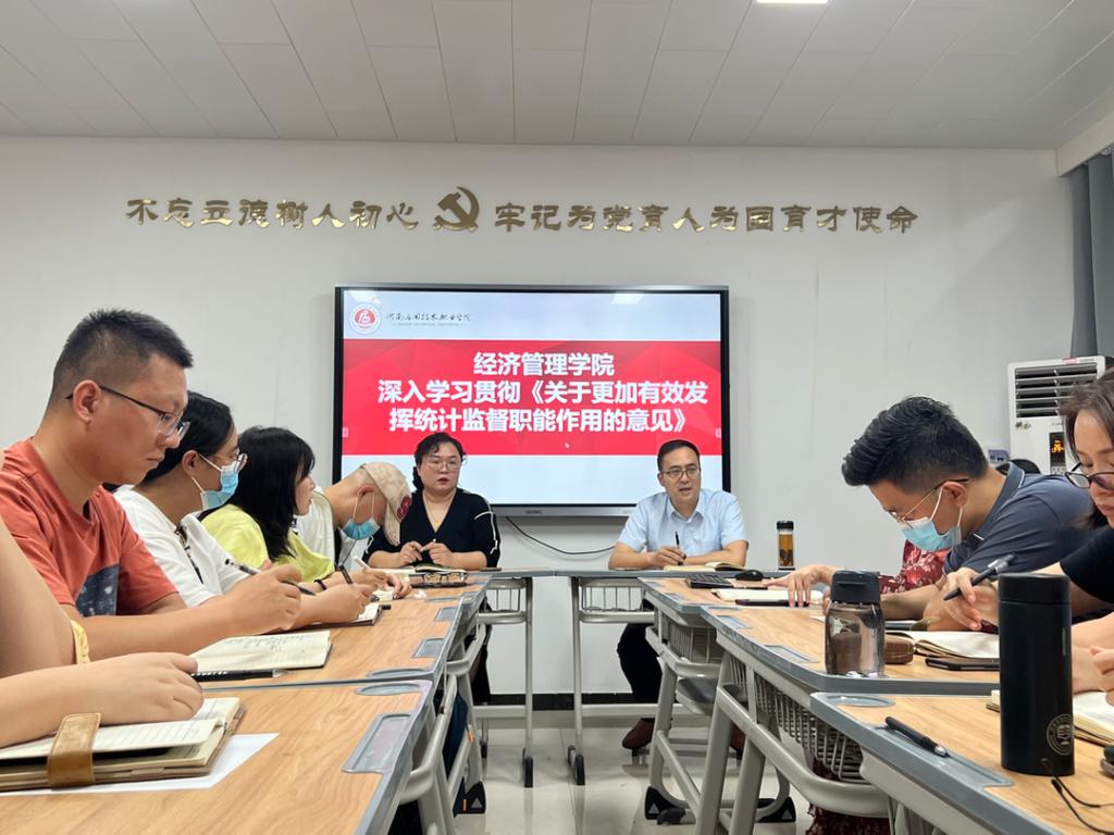 会上,柴芳芳领学中共中央办公厅国务院办公厅印发的《关于更加有效发挥统计监督职能作用的意见》。学习后,张召哲院长结合学籍学生人数上报、就业数据上报等工作指出,数据虚假将直接影响上层决策,各类统计数据不怕低就怕假,无论何时,要保证上报数据的准确性、真实性。