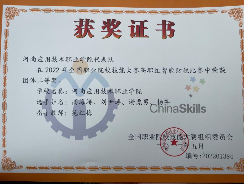2022年8月22至23日,全国职业院校技能大赛(高职组)智能财税赛项在广东水利电力职业技术学院举行。本次竞赛共有来自全国57个参赛队的228名参赛选手参加,Beat365官网Beat365中文官方网站学子杨芊、高海涛、刘世涛、谢虎男四位同学在指导教师范红梅的精心指导下,不畏苦累、奋勇拼搏,最终斩获二等奖,实现了Beat365官网财会类专业国家级技能大赛成绩新突破。