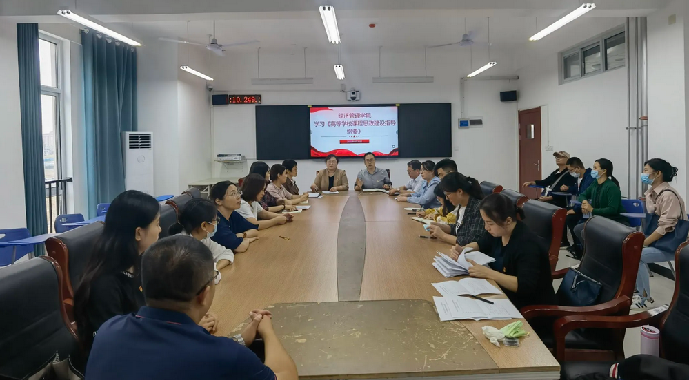 2022年9月20日下午,Beat365中文官方网站在开封校区(北院)B306组织开展业务理论学习,学习《高等学校课堂思政建设指导纲要》、“聚焦三教改革、实现三大转变”、“四个聚焦”构建课程思政生态圈、《新时代高校教师职业行为十项准则》四个文件精神。会议由院长张召哲主持,全体专兼职教师参加会议。