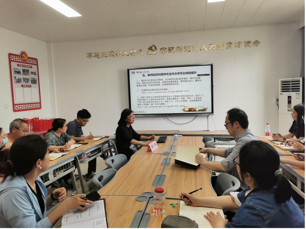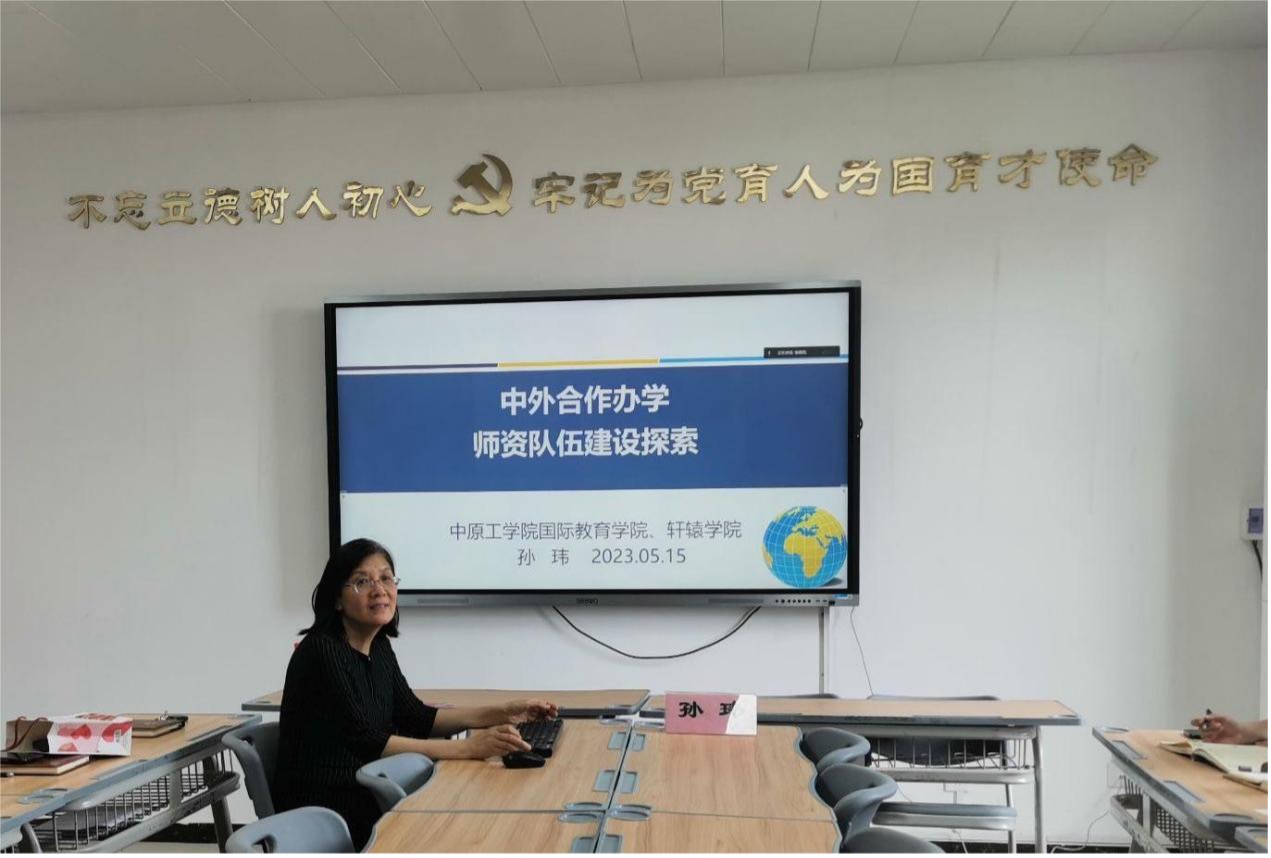 5月15日,中原工学院国际教育学院院长孙玮教授应邀来到Beat365官网,围绕国际合作办学管理模式、专业发展及师资团队建设做专题报告。Beat365中文官方网站全体专兼职教师参加了本次交流活动。