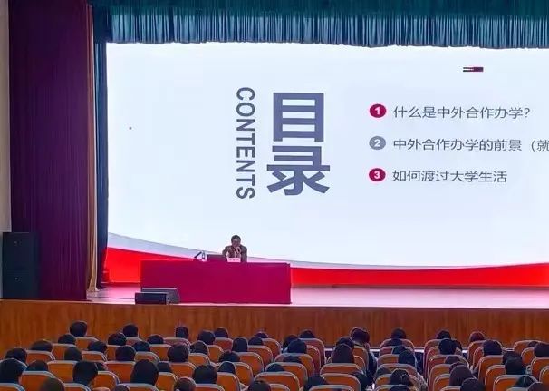 会上,刘国仕结合个人从事高等学校外事工作经历,给同学们讲解了中外合作办学的概念、核心、类型及优势。他指出,中外合作办学具备课程、语言、就业、费用四个层面优势,希望同学们充分利用中外合作办学优势,不断拓展国际化视野和国际思维,做好个人职业生涯规划,加快实现角色转变,适应大学生活。针对大学生活中可能出现的环境适应、理想差距、认知偏差、学习适应、恋爱心理等问题,刘国仕提出三点中肯建议,一要坚定信念、树立信心;二要坚持学习、心无旁骛;三要脚踏实地、做好积累。以学习英语单词为例,他希望同学们要调整学习策略,掌握学习方法,从“要我学”转变成“我要学”。最后,他鼓励同学们充分利用中外合作办学平台和资源,给个人理想插上翅膀,在国际舞台发光发热。