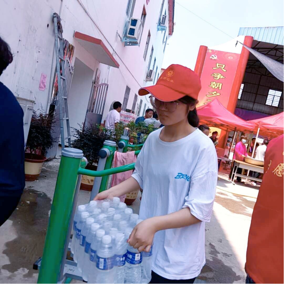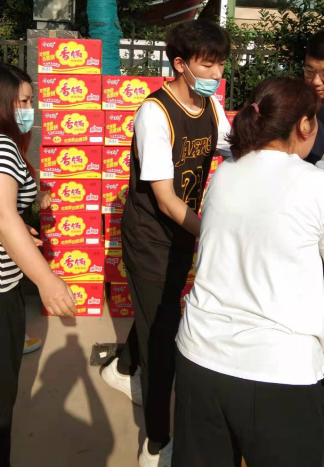 财管2003班仝亚瑞,利用暑期在郑州市高新区做兼职,当听闻各个受灾社区紧需支援时,第一时间赶到郑州市秋雅社区,帮助社区向居民分发救援物资。