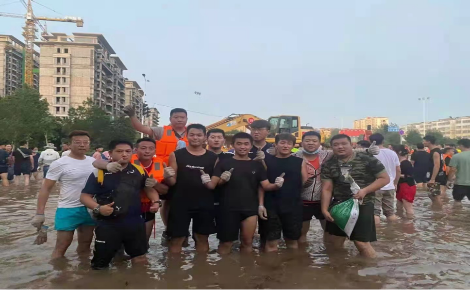金融1901班王一鸣,原退伍军人,集合退伍战友自发参与到郑州某救援队,第一时间奔赴新乡卫辉市参与救援服务。赶到当天下午5点至次日6点多,一直泡在水中参与救援工作,转运伤员、搬防汛带、抗堤、搜寻失踪人员等,哪里有需要就在哪里。(因长期在水中浸泡抗灾,未能带手机拍照)