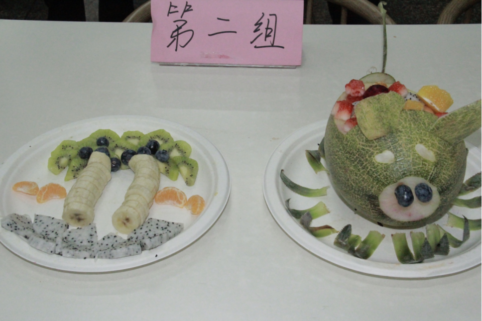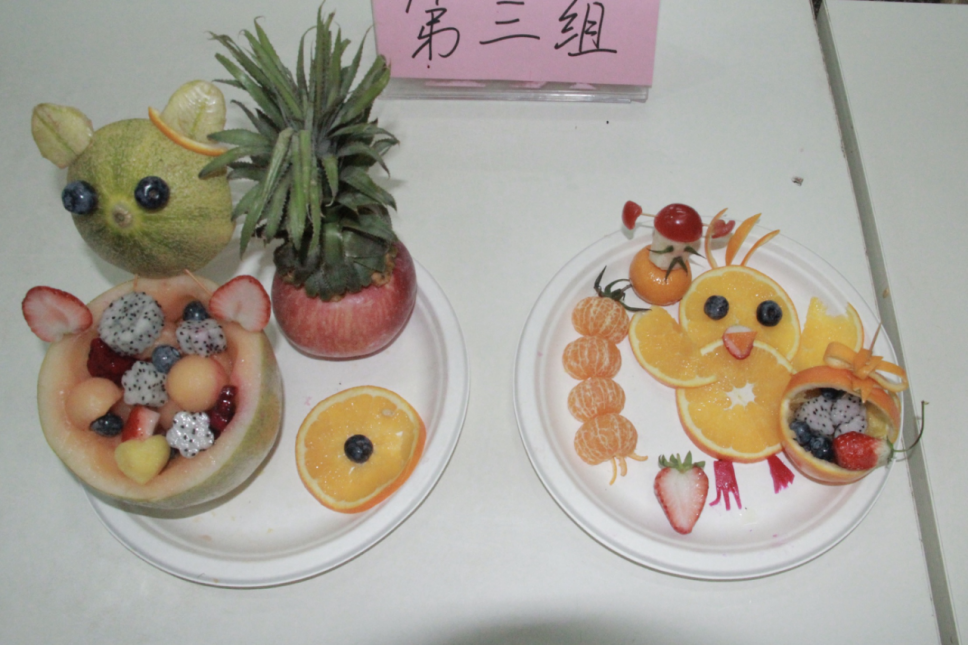 大家对于这次水果拼盘都表现出了极大的热情。活动还没正式开始,参赛队伍就已经早早来到比赛场地,观众们也陆陆续续进场。活动中,各个选手们发挥想象力,制作了各种有创意的水果拼盘,使人大饱眼福,垂涎三尺。比赛一开始,选手们争分夺秒地削皮、雕刻,运用牙签、勺子等辅助工具把苹果、西瓜、橘子、哈密瓜等水果切割成各种新颖形状。赛场上果香四溢,色彩鲜艳的水果在学生们的手上变成了富有创意的艺术品。为营造意境,突出主题,材料上的准备也极为丰富,各式水果拼盘从造型、构思意念到名称都极尽心思,充分体现同学们准备的精心及创意。从作品中所展示的不仅是选手们精湛的手艺,更是展示他们的想象力、创造力以及自身的文化素养。