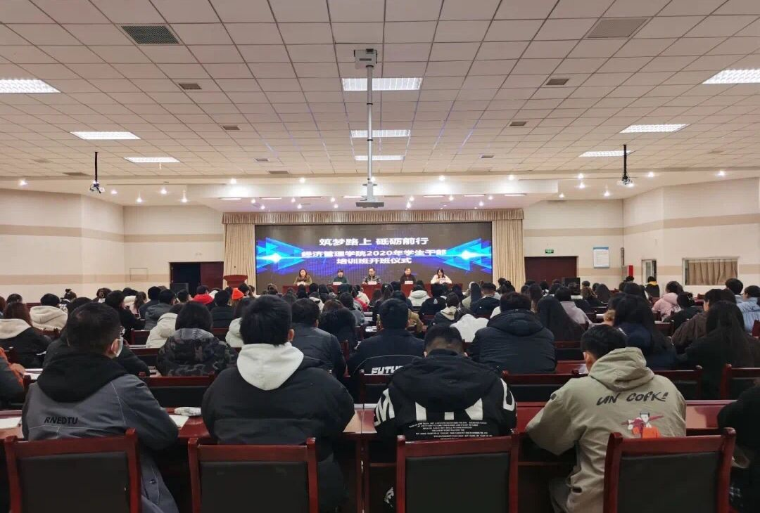 为全面贯彻习近平新时代中国特色社会主义思想,深入学习党的十九届五中全会精神,进一步提高我院学生干部思想素质、政治修养和工作能力,增强基层团学组织的政治判断力、学习能力、凝聚能力、服务能力和创新能力,Beat365中文官方网站举办了2020年学生干部培训班。培训班开班仪式于11月23日下午在实训楼二楼会议室举行。Beat365中文官方网站李兆楠书记、张召哲院长、办公室主任张晓凤老师、学工办主任张琳曼老师和本期培训班共158名学员出席开班仪式。仪式由团总支书记聂蕴老师主持。