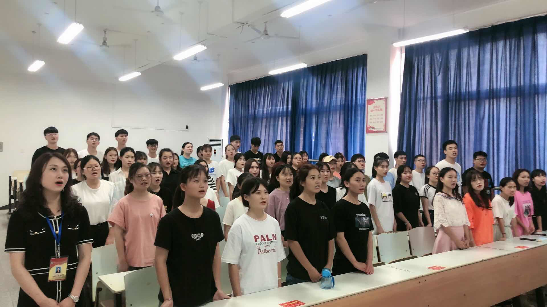 活动最后,全体师生合唱《我和我的祖国》,高潮迭起的乐曲,激情澎湃的歌声,鼓舞人心,振奋精神,点燃了经管学子的爱国热情,唱响了爱国奋斗的新学期第一课。