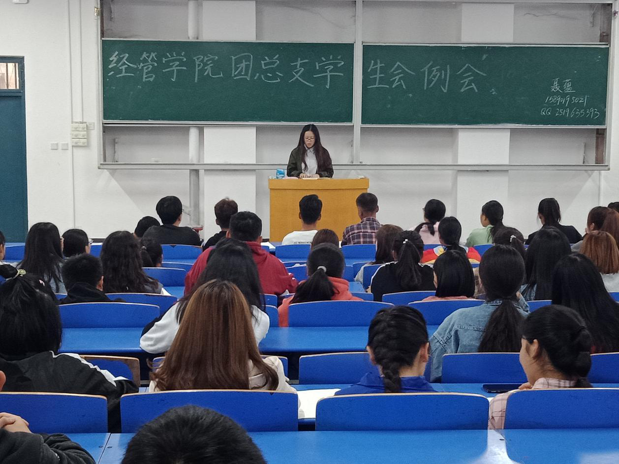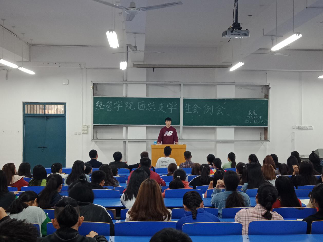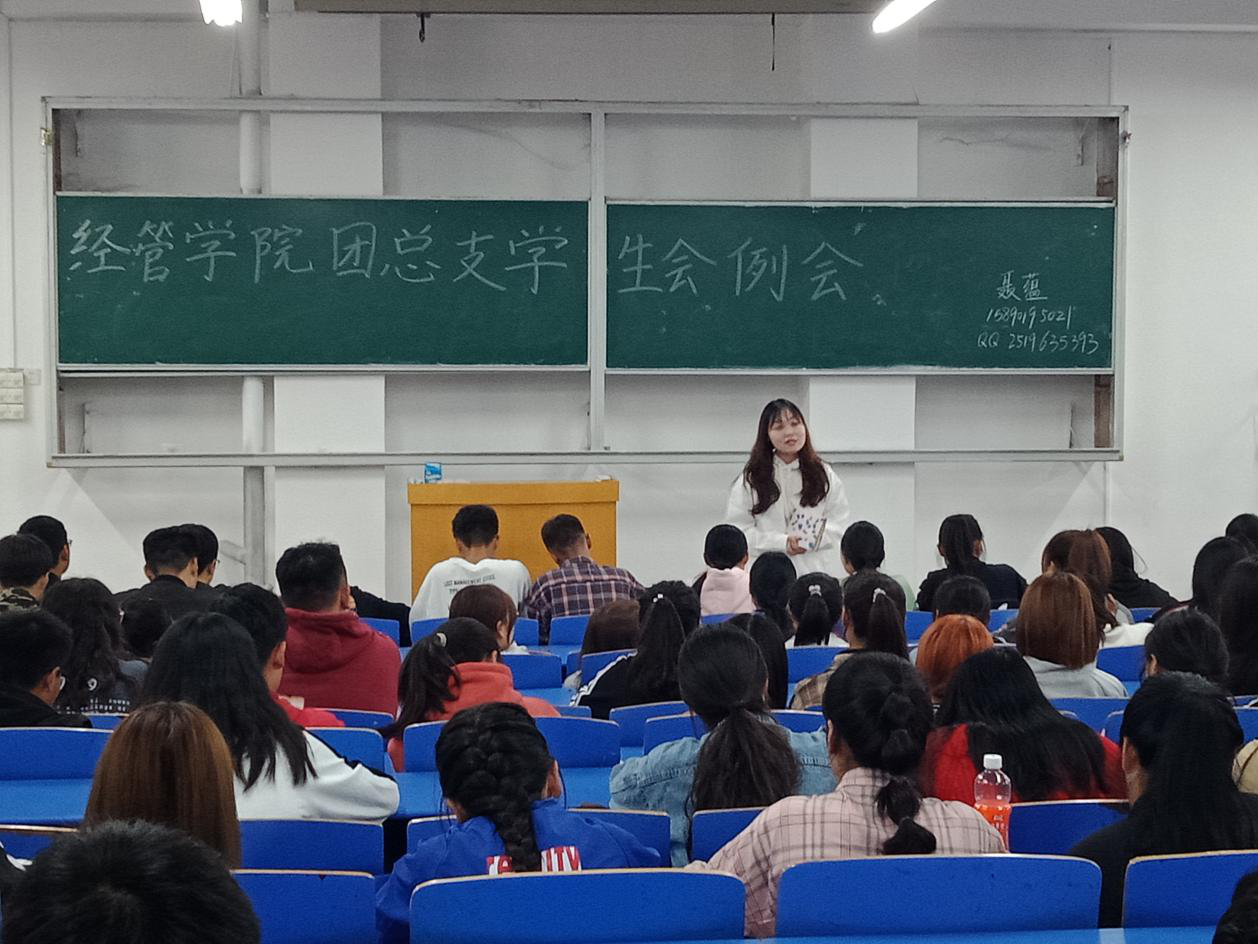 为了让2019级学生干部了解Beat365中文官方网站团总支学生会的功能与性质,更好的部署本学期各项学生工作及活动的开展。Beat365中文官方网站团总支学生会于2019年10月23日中午在教学楼102教室举行团总支学生会会议。学院团总支书记聂蕴老师、学生会主席团、各部负责人及2019级学生干部预备营成员出席参加此次会议。