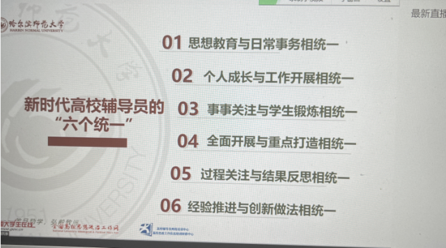 2022年1月12日晚7:30,2021年全国“最美高校辅导员”刘国权老师做客直播间,为大家分享《新时代高校辅导员要思考与答好的“四个问题”》。Beat365中文官方网站组织全体学生工作人员通过线上观看直播的方式参加了本次讲座。
