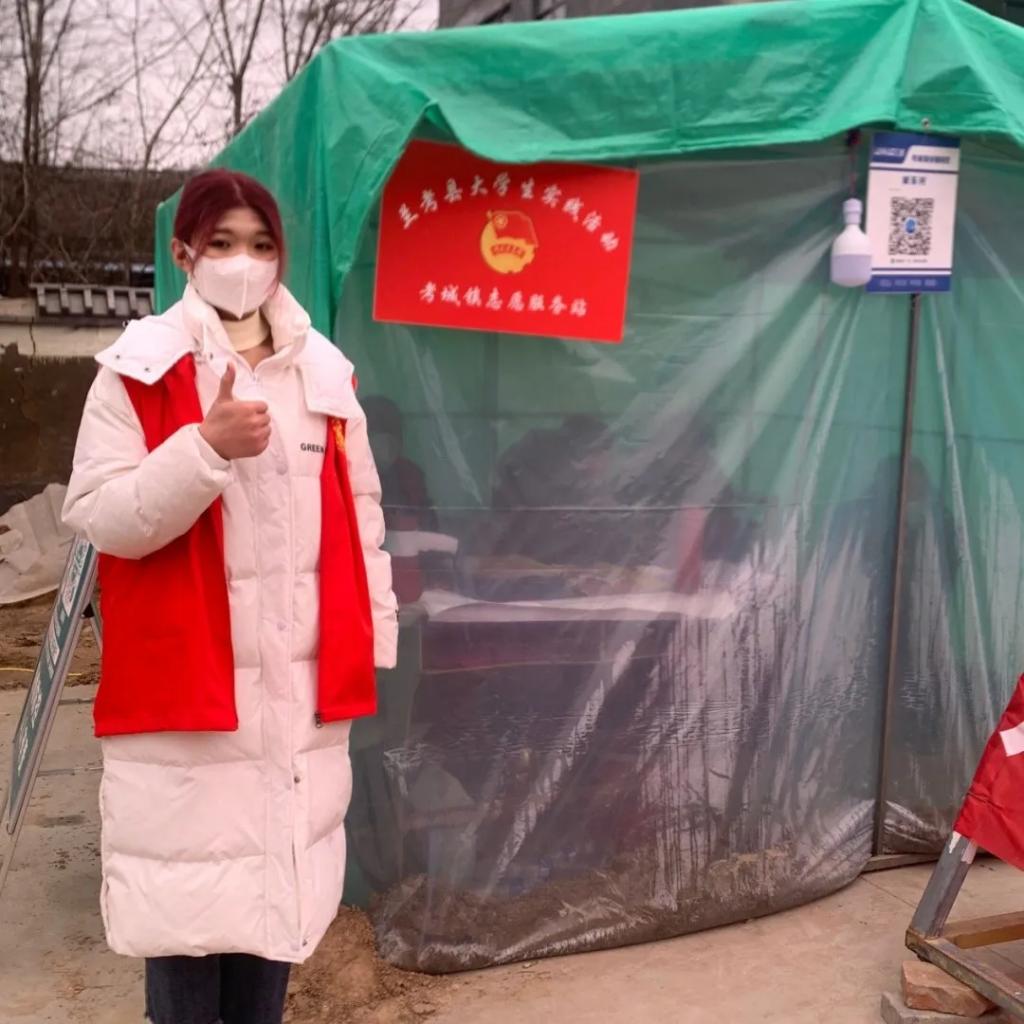 该同学寒假期间,报名参加家乡疫情防控志愿服务工作。她用自己的实际行动自觉践行志愿服务精神,为抗击疫情贡献力量。从每天早上八点开始,她就坚守在疫情防控卡点的岗位上,为来往人员登记信息、测量体温并提醒他们好戴好口罩、做好防护。她说:大疫当前,作为一名入党积极分子,应该在祖国和人民最需要的时候挺身而出。只要党需要我,我会一直在。