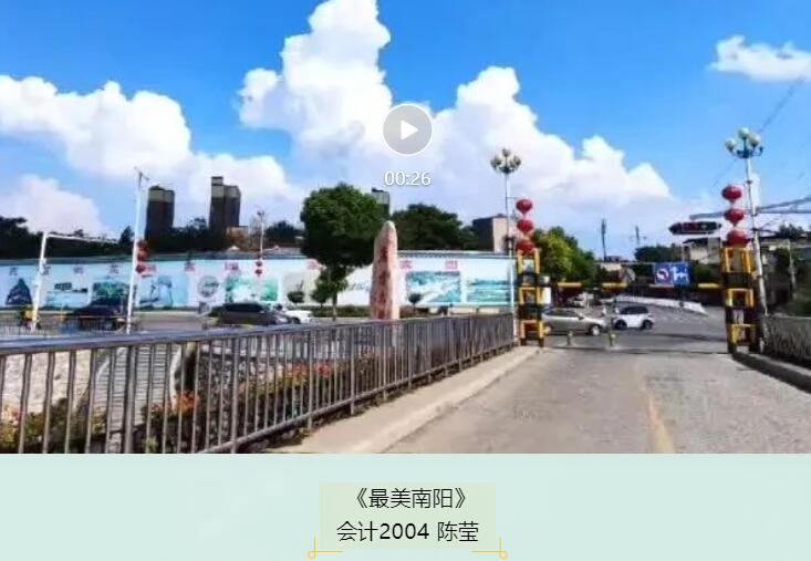 我的家乡就是朴实的南阳,她就像一条小溪静静流淌于我心间,不攀摘花草树木,芬芳四溢;家乡是我心中一首缠绵的歌曲,潭深水幽,南阳已是闻名全国的冶铁中心。我们身边多了一个个讲文明谦虚礼让的市民,做文明事,南阳人纯朴厚情。 ——《最美南阳》会计2004 陈莹