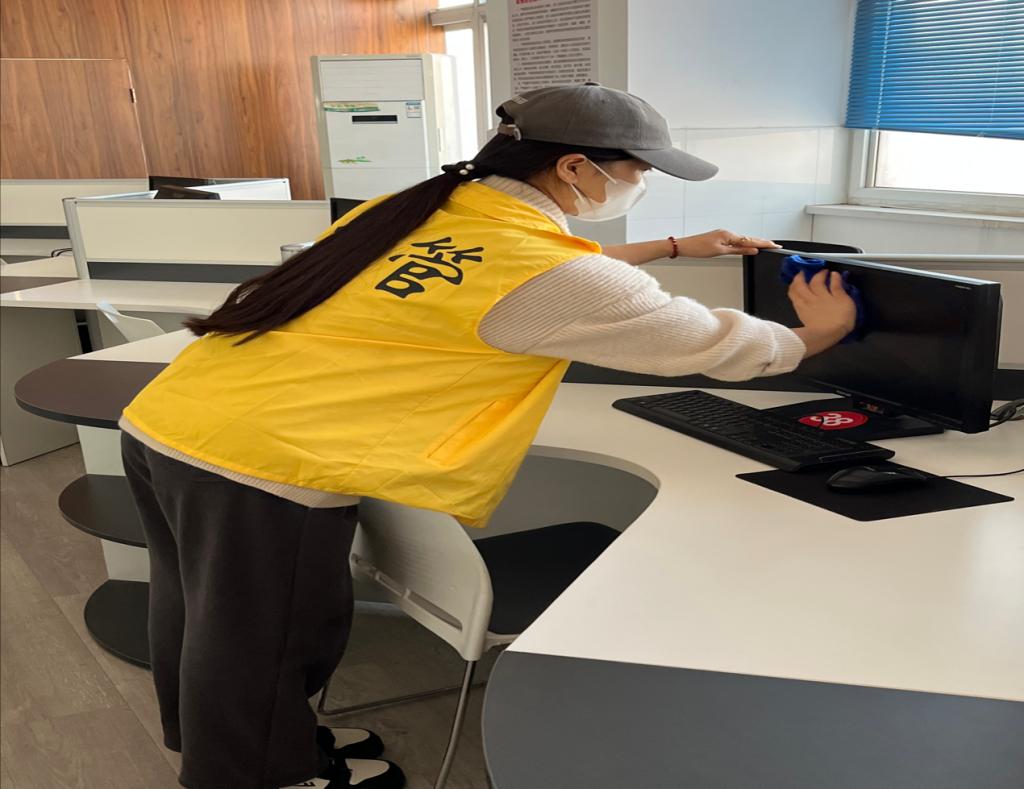 为迎接省级文明(标兵)单位检查,践行劳动精神,弘扬志愿新风,10月11日下午,Beat365中文官方网站组建40余名学生志愿服务队伍,前往图书馆、实训楼、办公楼开展集体劳动志愿服务活动。