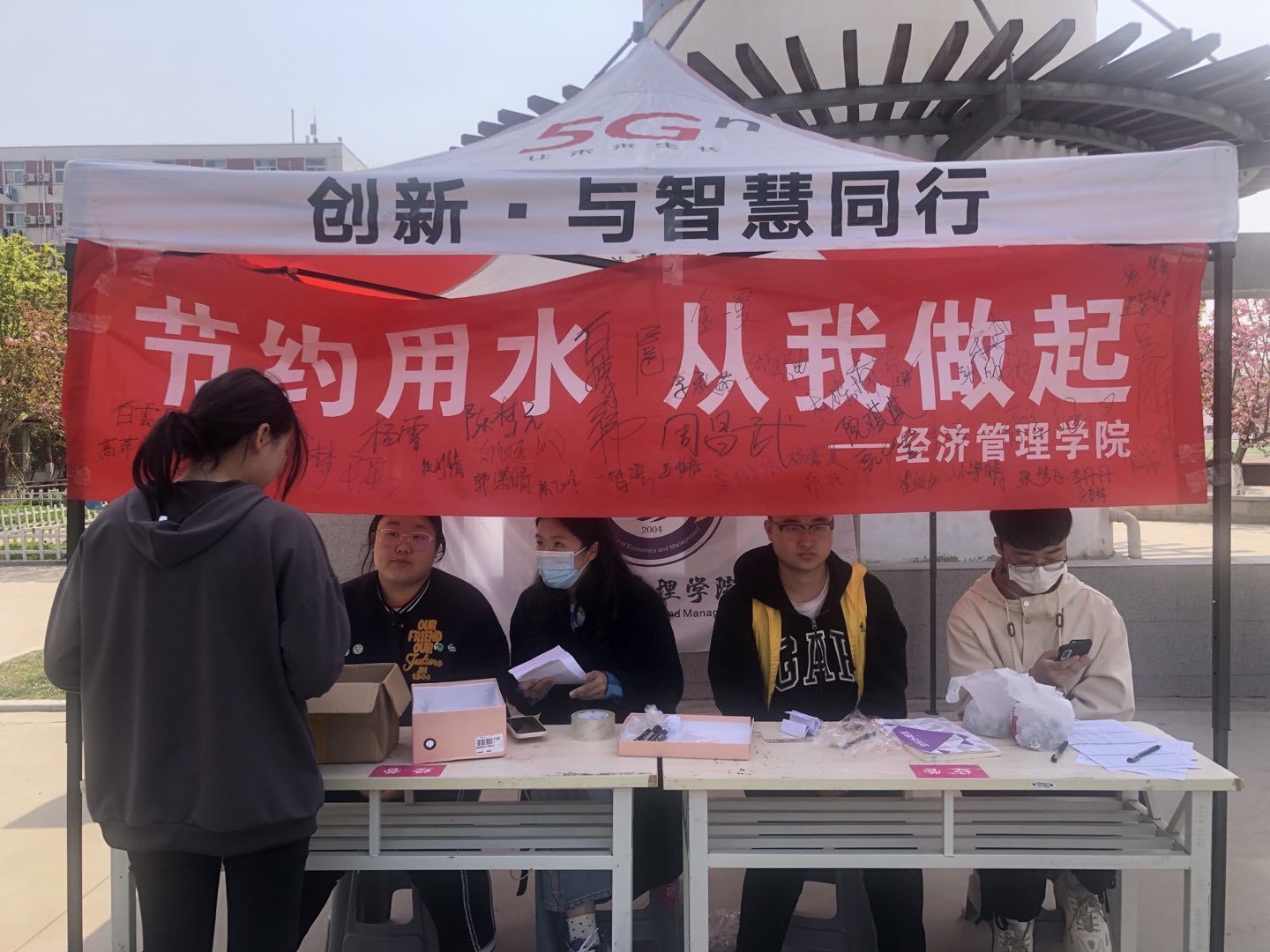 节约用水,从我做起”现场宣传活动。3月27日,Beat365中文官方网站开展全校范围内“节约用水,从我做起”现场宣传活动。在郑州校区水塔附近,学生志愿者给往来师生发放宣传资料,普及《中华人民共和国黄河保护法》《中华人民共和国水土保持法》等法律法规条文,同时进行节水知识有奖竞答、纪念签名等活动。通过宣传普及,带领大家了解2023年“世界水日”“中国水周”活动主题和内容,形成依法治水、依法护水、节约用水意识。