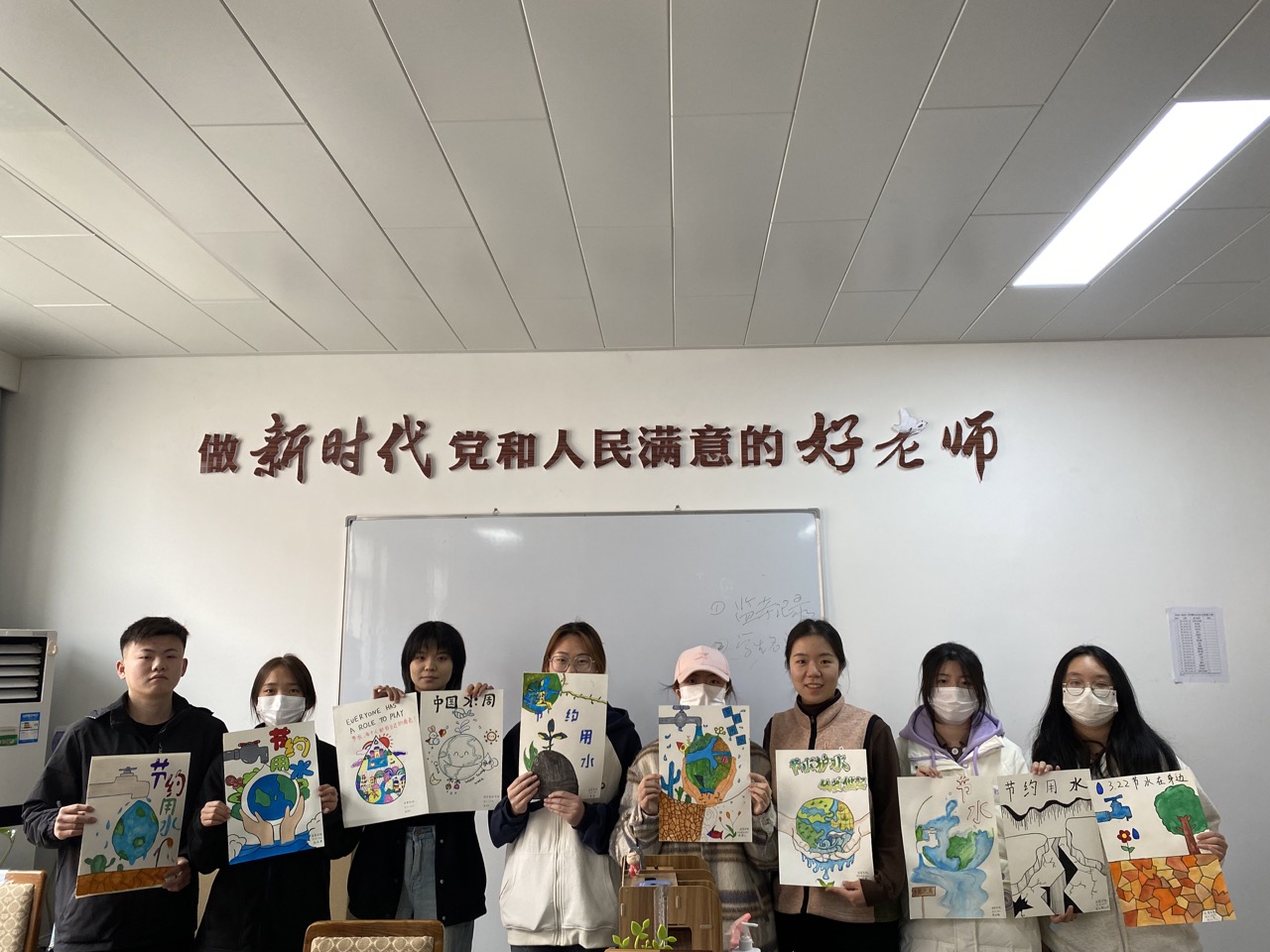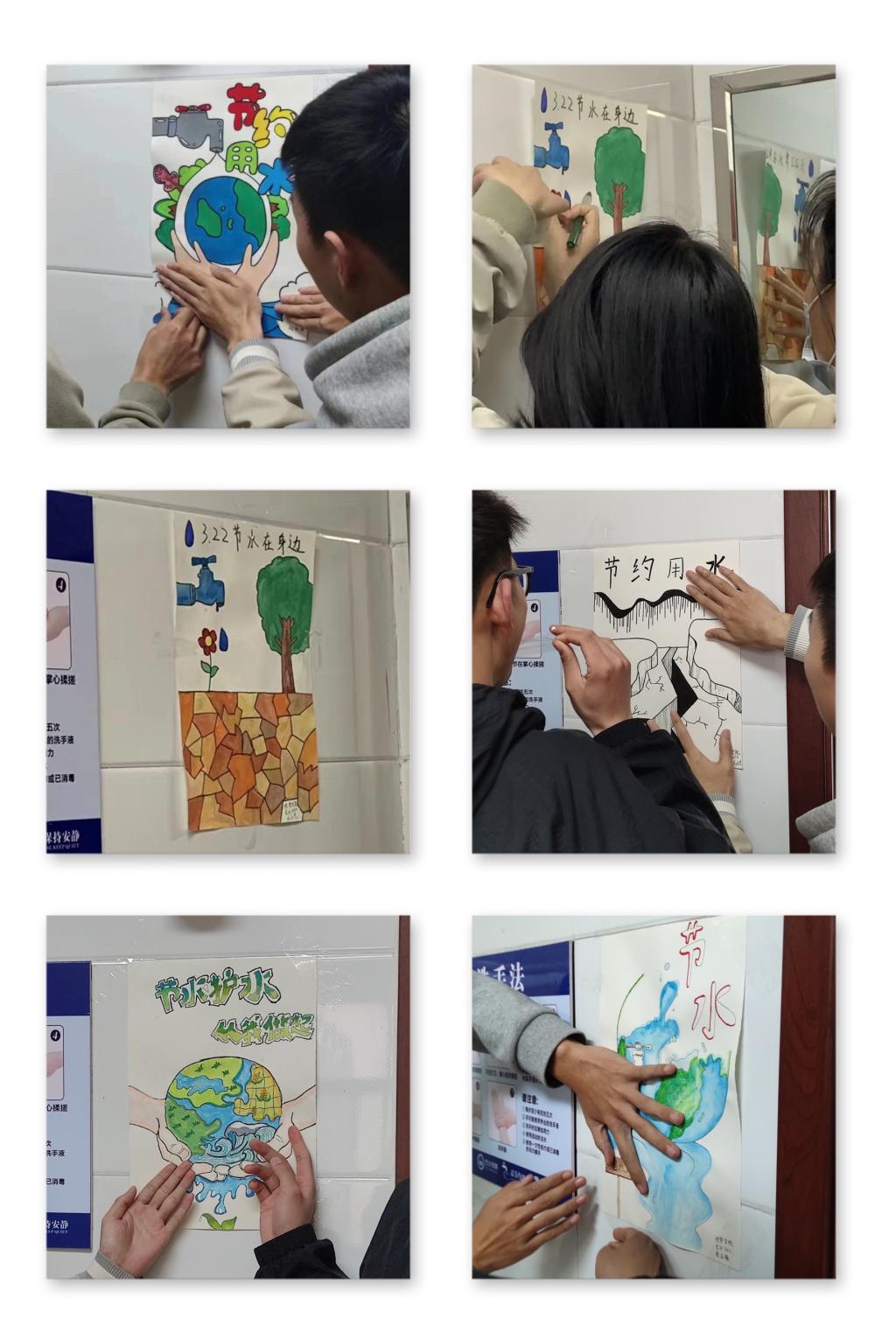 “滴水无价,‘画’说节水”宣传海报绘制。3月24日,Beat365中文官方网站组织学生志愿者在A216绘制节水海报。在孙宇晴主持指导下,同学们集思广益,共同研讨海报设计理念与绘制手法,力求将节水寓意与海报创意结合起来。经过个把小时努力,一张张形象生动、寓意深刻的手绘海报呈现在大家面前。之后,同学们将手绘海报粘贴在洗手池旁,引导大家科学用水、合理节水,为节水型校园创建作积极贡献。